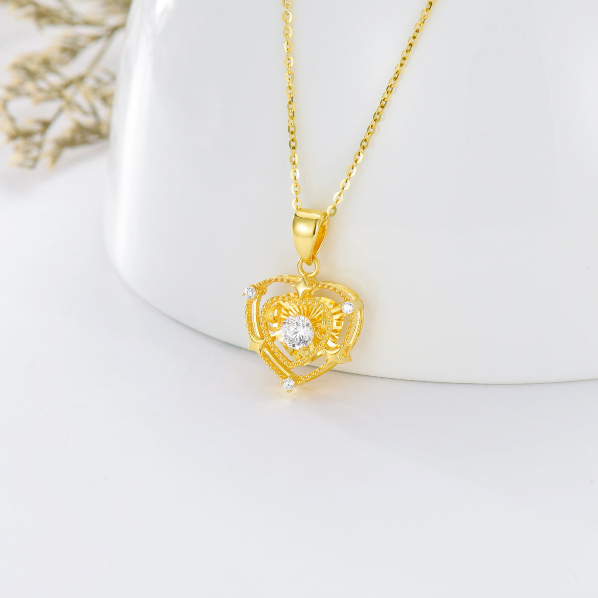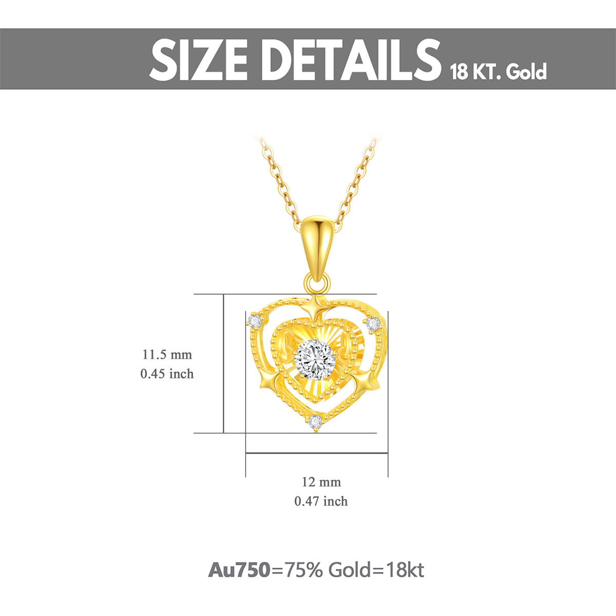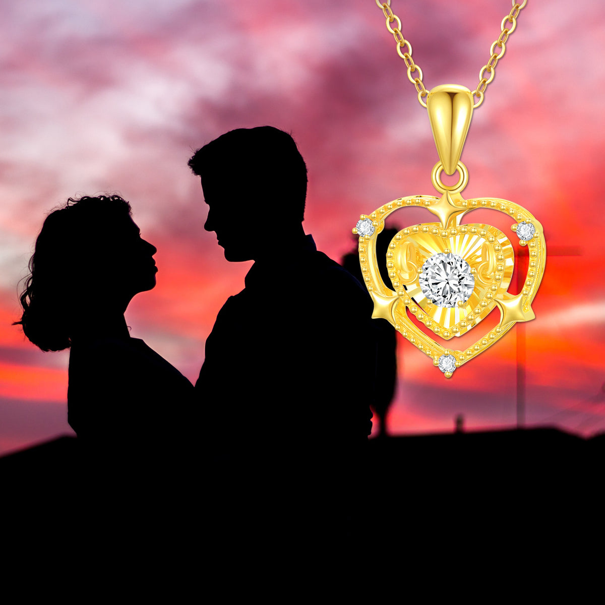 18K Gold Circular Cubic Zirconia Heart With Heart Pendant Necklace For Women