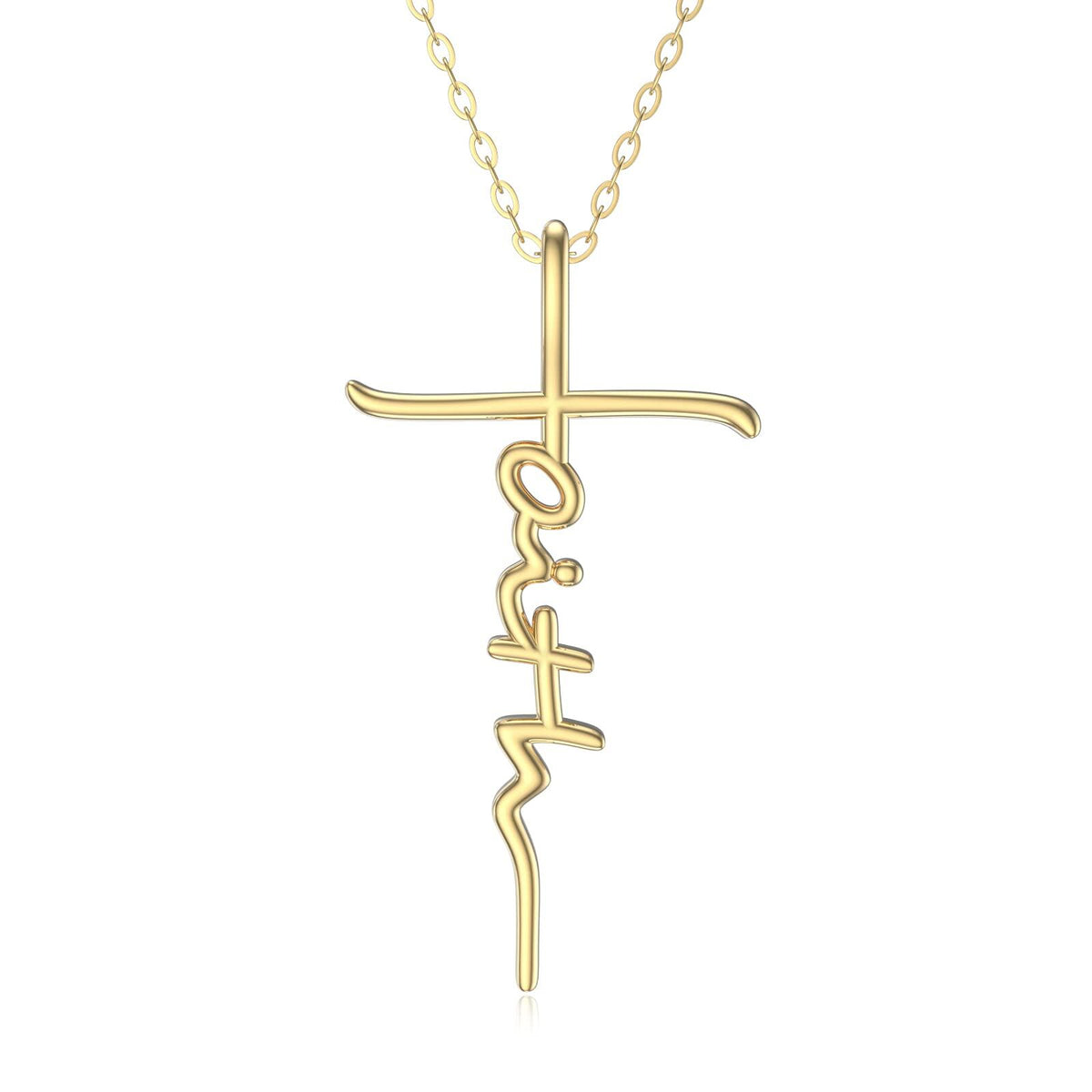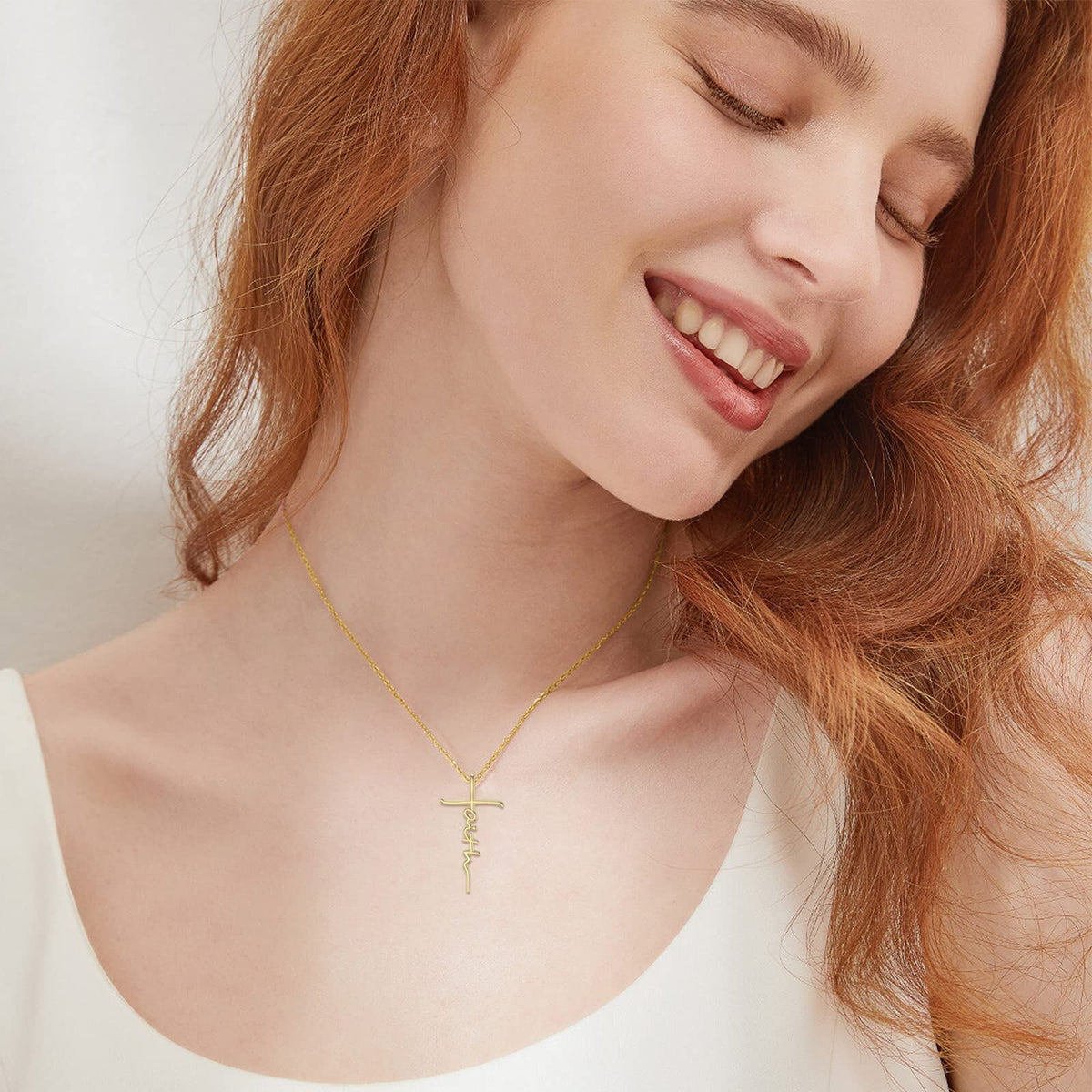 14K Gold Handwriting Faith Cross Pendant Necklace