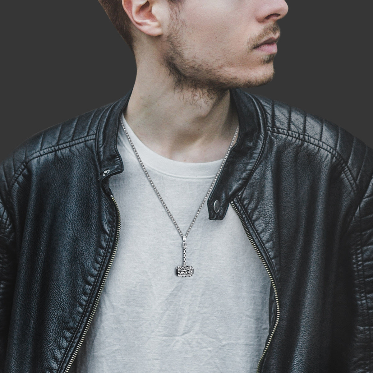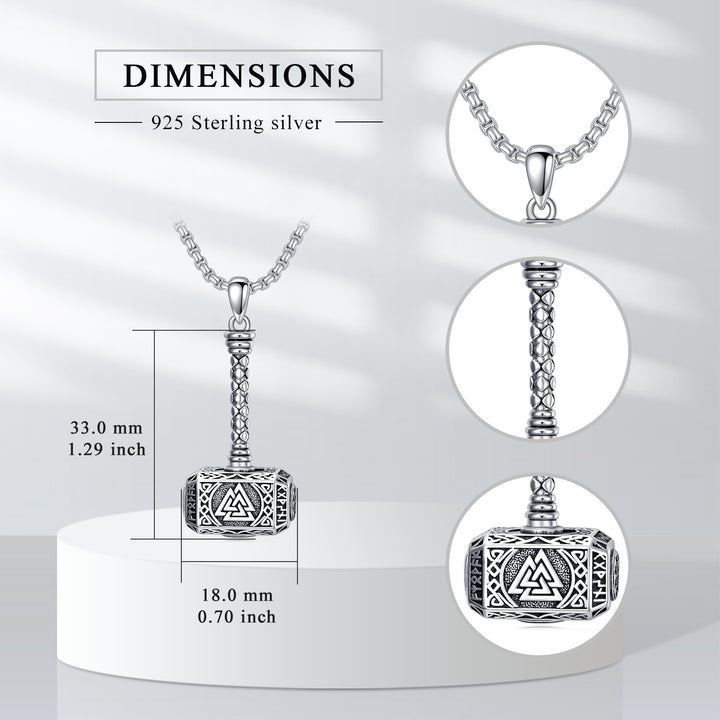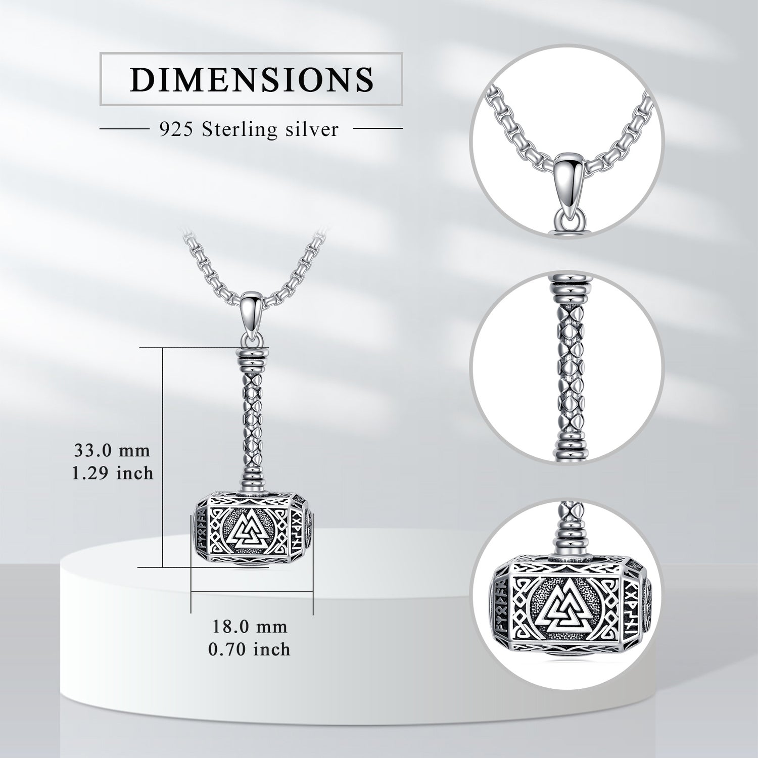 Forged from premium Sterling Silver with a Retro Silver finish, this no-stone Men's Urn Necklace features a Thor's Hammer design.