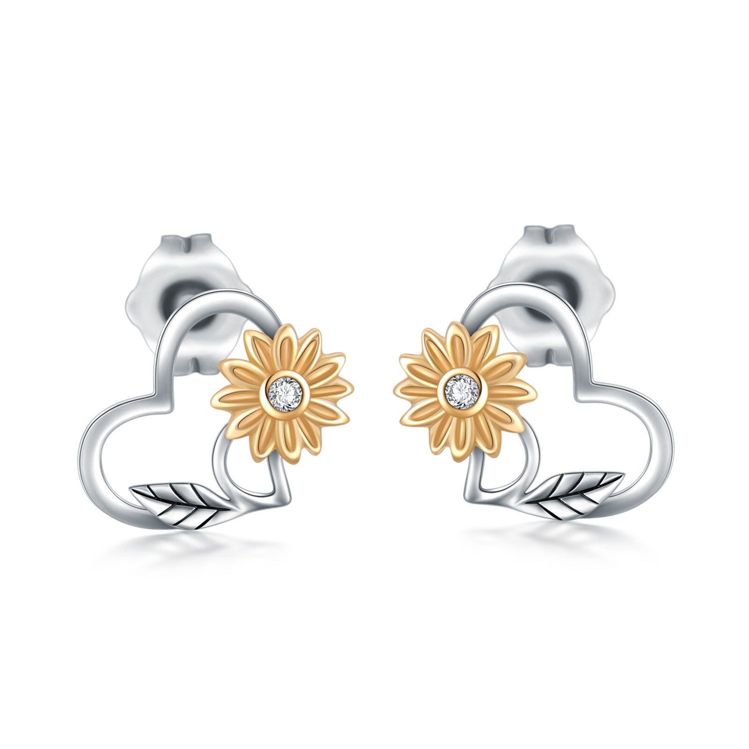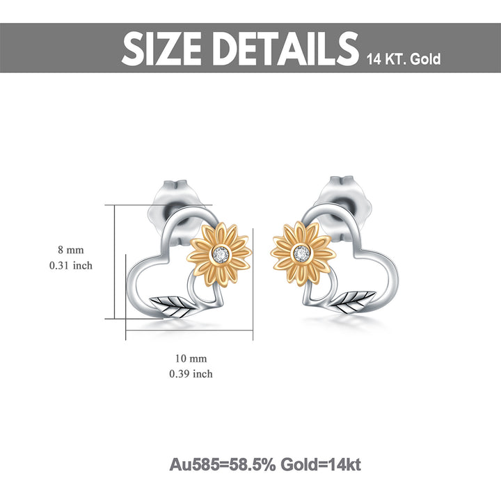 14K Gold Two-Tone Cubic Zirconia Sunflower Stud Earrings For Women
