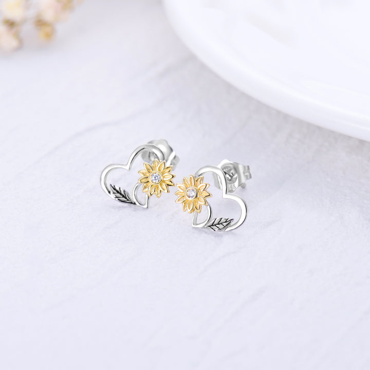 These 14K Gold Two-Tone Cubic Zirconia Sunflower Stud Earrings by YFN capture radiant beauty through their charming sunflower motif, symbolizing warmth, joy, and positivity. Crafted in luminous 14K gold, the studs feature sparkling cubic zirconia arranged to mirror the natural brilliance of sunlit petals. Available in white gold and yellow gold finishes, the two-tone versatility ensures a perfect match for any style. Designed exclusively for women, these earrings blend timeless elegance with a cheerful touch, making them ideal for daily wear or brightening special occasions with graceful sparkle.