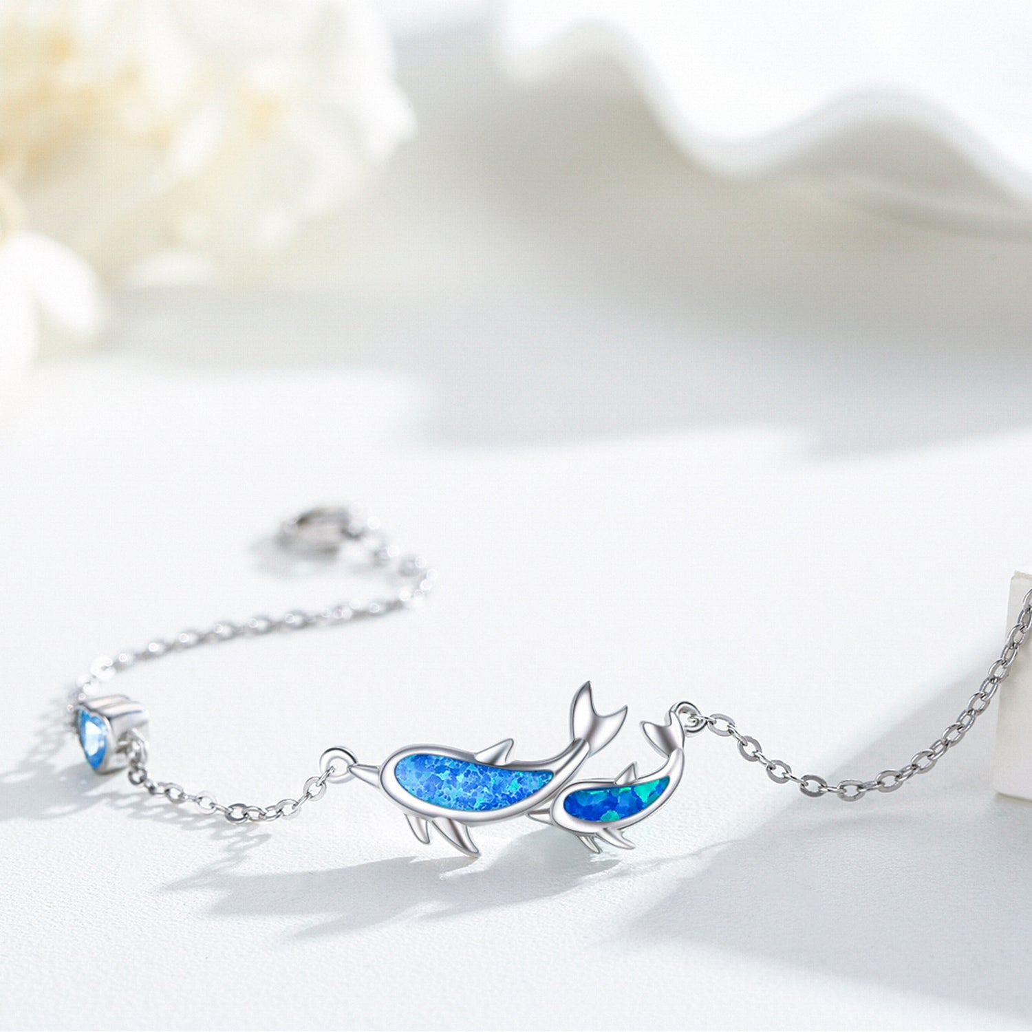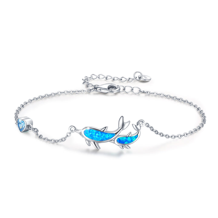 Sterling Silver Blue Opal Dolphin Charm Bracelet For Women