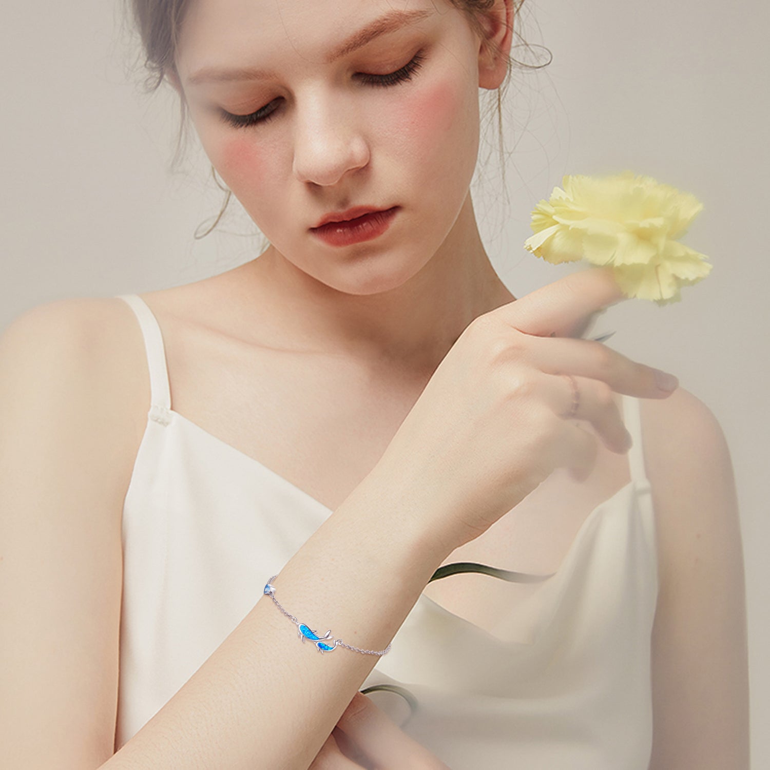 This Sterling Silver Blue Opal Dolphin Charm Bracelet For Women by YFN is an enchanting accessory that blends oceanic charm with sophistication. This White Gold Plated Charm Bracelet is expertly crafted in sterling silver, featuring a captivating Dolphin and Heart Design adorned with brilliant Cubic Zirconia for sparkle. The exquisite Blue Opal centerpiece contrasts beautifully, making it an eye-catching addition for women who love unique, marine-inspired jewelry.