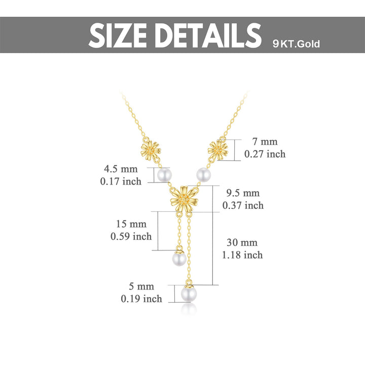 This Women's Pendant Necklace is crafted from Premium 14K Gold, Adorned with a Radiant Sunflower Motif and a Lustrous Pearl.