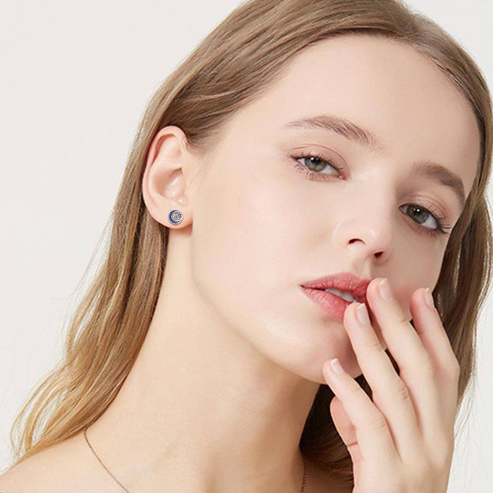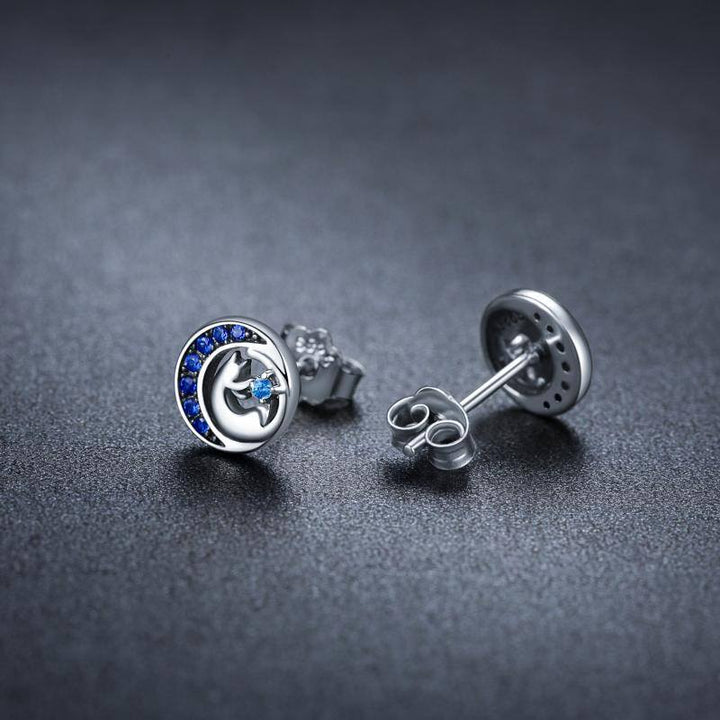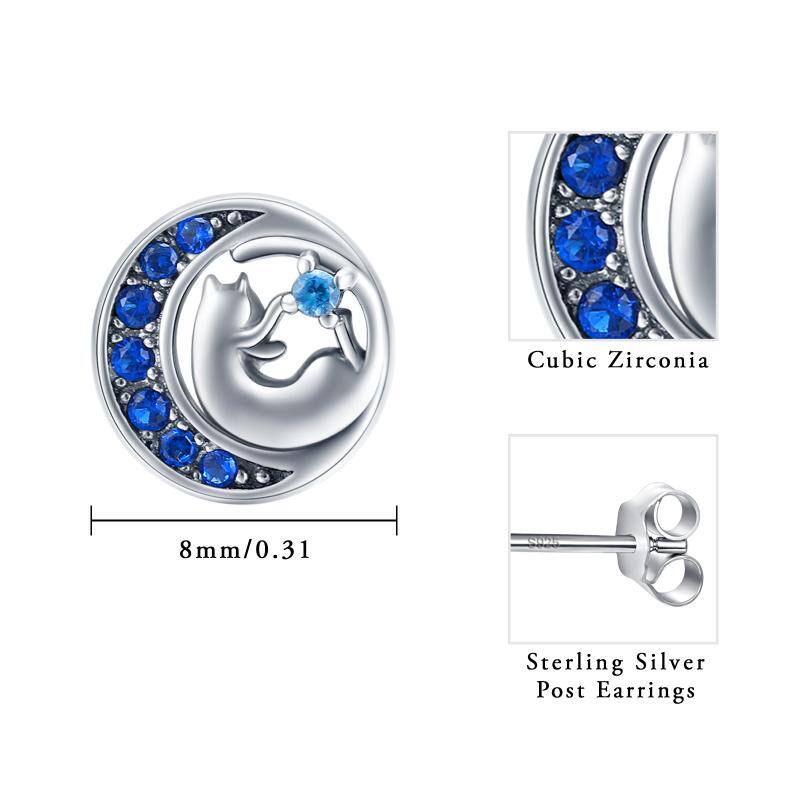 Sterling Silver Blue Cubic Zirconia Cat & Moon Circle Stud Earrings for Women