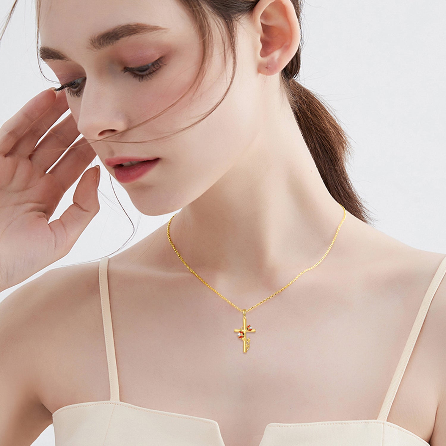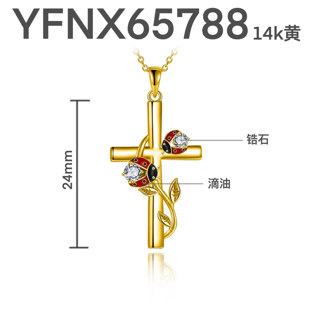 This 14K Gold Cubic Zirconia Ladybug & Cross Pendant Necklace by YFN is a unique necklace for women, blending whimsy with elegance. Crafted from luxurious 14K gold, the delicate design features a charming ladybug paired with a classic cross, both adorned with high-quality Cubic Zirconia. This enchanting piece is perfect for adding a touch of playful sophistication and detailed craftsmanship to any ensemble.