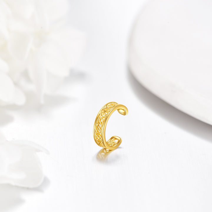 These 14K Gold Celtic Knot Cuff Earrings by YFN are a stone-free, minimalist accessory for the modern woman. Crafted from high-quality 14K gold, these cuff earrings feature a unique Celtic Knot design (symbolizing love and unity), ensuring a seamless blend of sophistication and simplicity.