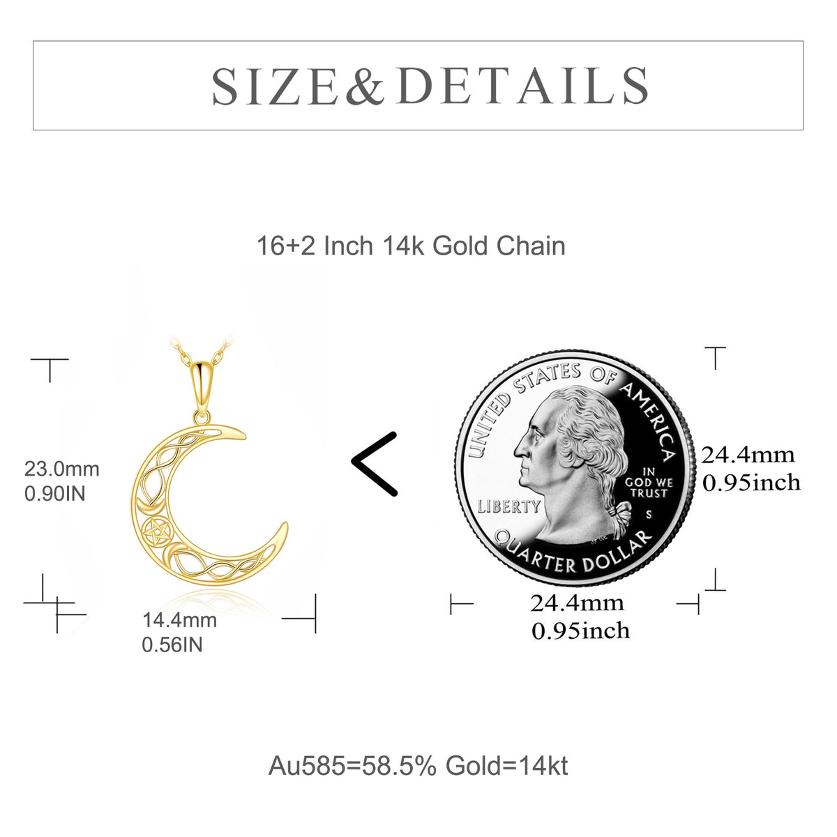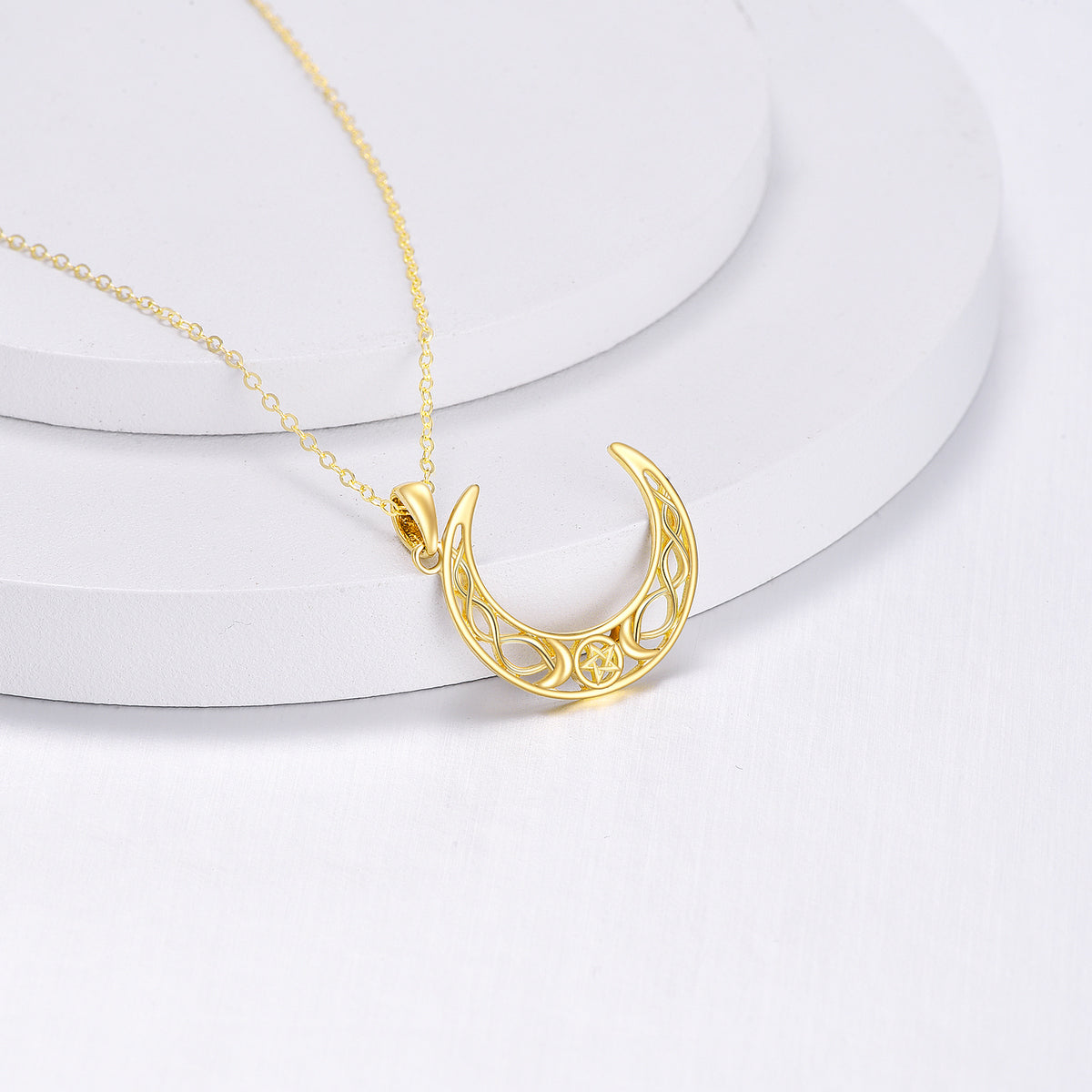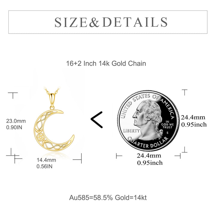 14K Gold Celtic Knot Moon & Pentagram Pendant Necklace