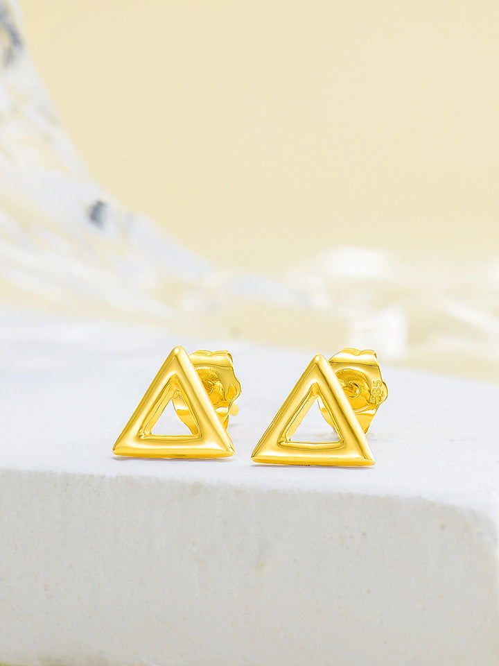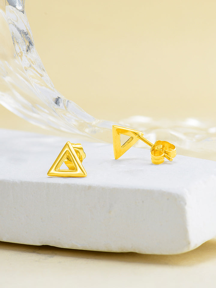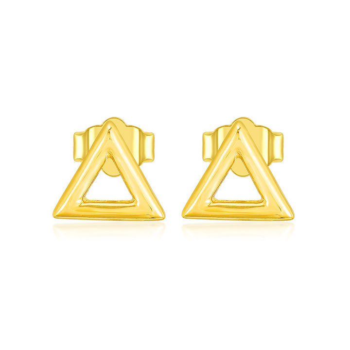 Crafted in 14K yellow gold with a polished finish. Triangle-shaped stud earrings. Stone-free design.