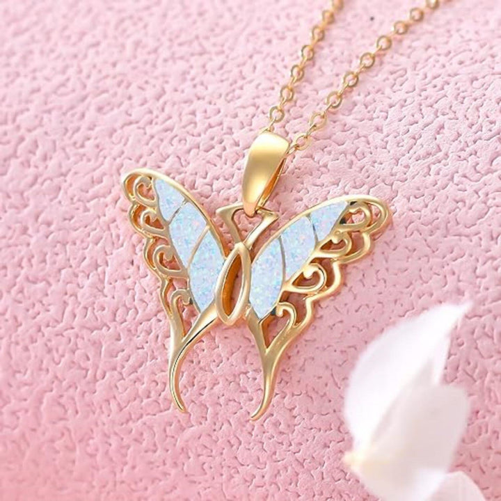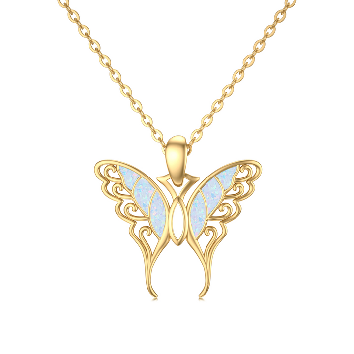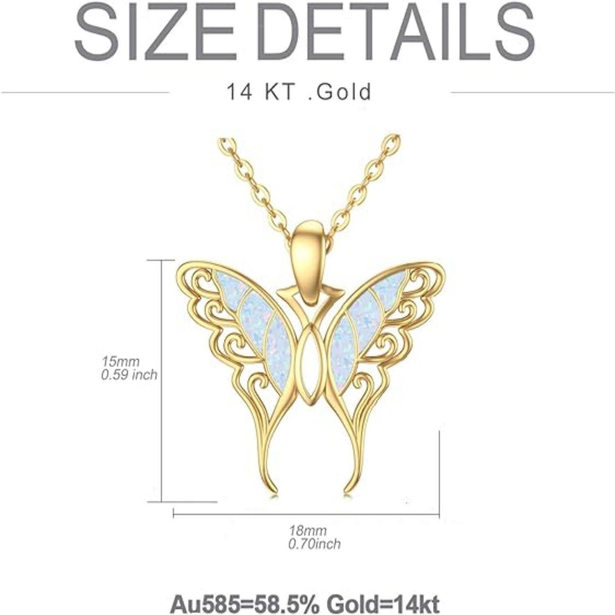 This 14K Gold Opal Butterfly Pendant Necklace by YFN features a captivating butterfly silhouette brought to life by the iridescent glow of opal. The gentle play of color adds depth and charm, symbolizing transformation, hope, and beauty. Crafted in fine gold, this pendant brings effortless elegance and meaningful symbolism to both casual and formal looks.