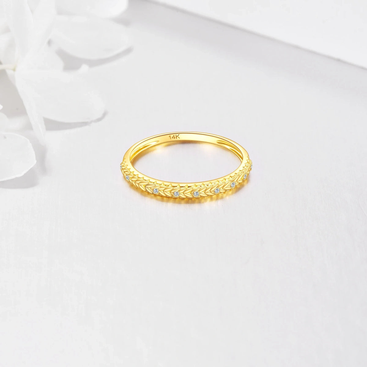 14K Gold Round Shaped Cubic Zirconia Leaves Ring