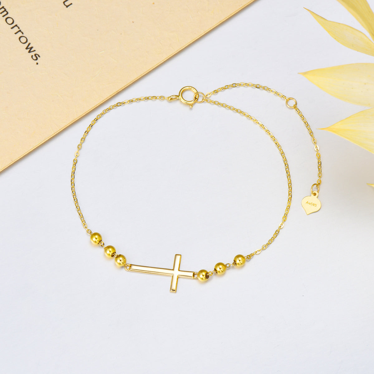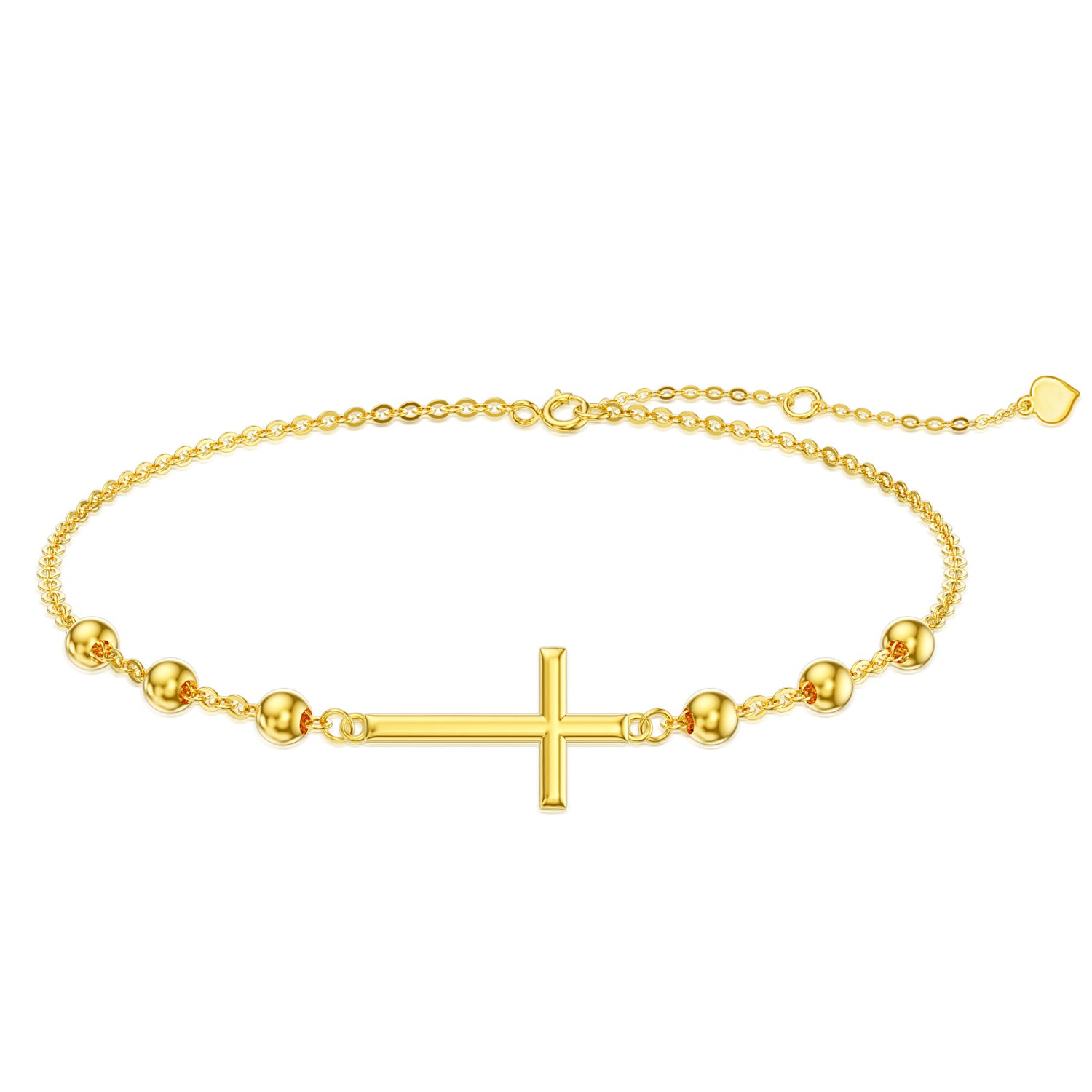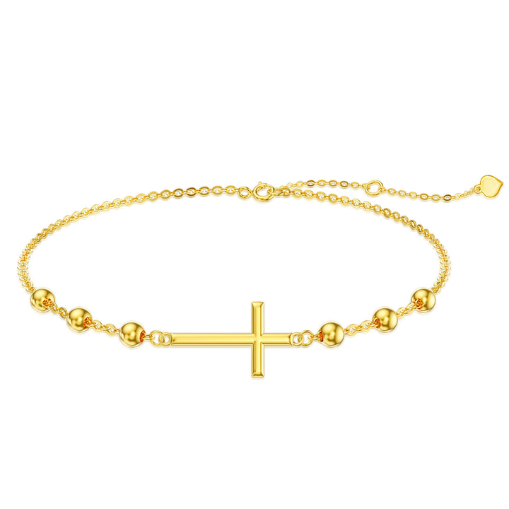 Crafted from premium 14K Gold, this stone-free Bead Station Chain Bracelet features a dainty Cross charm.