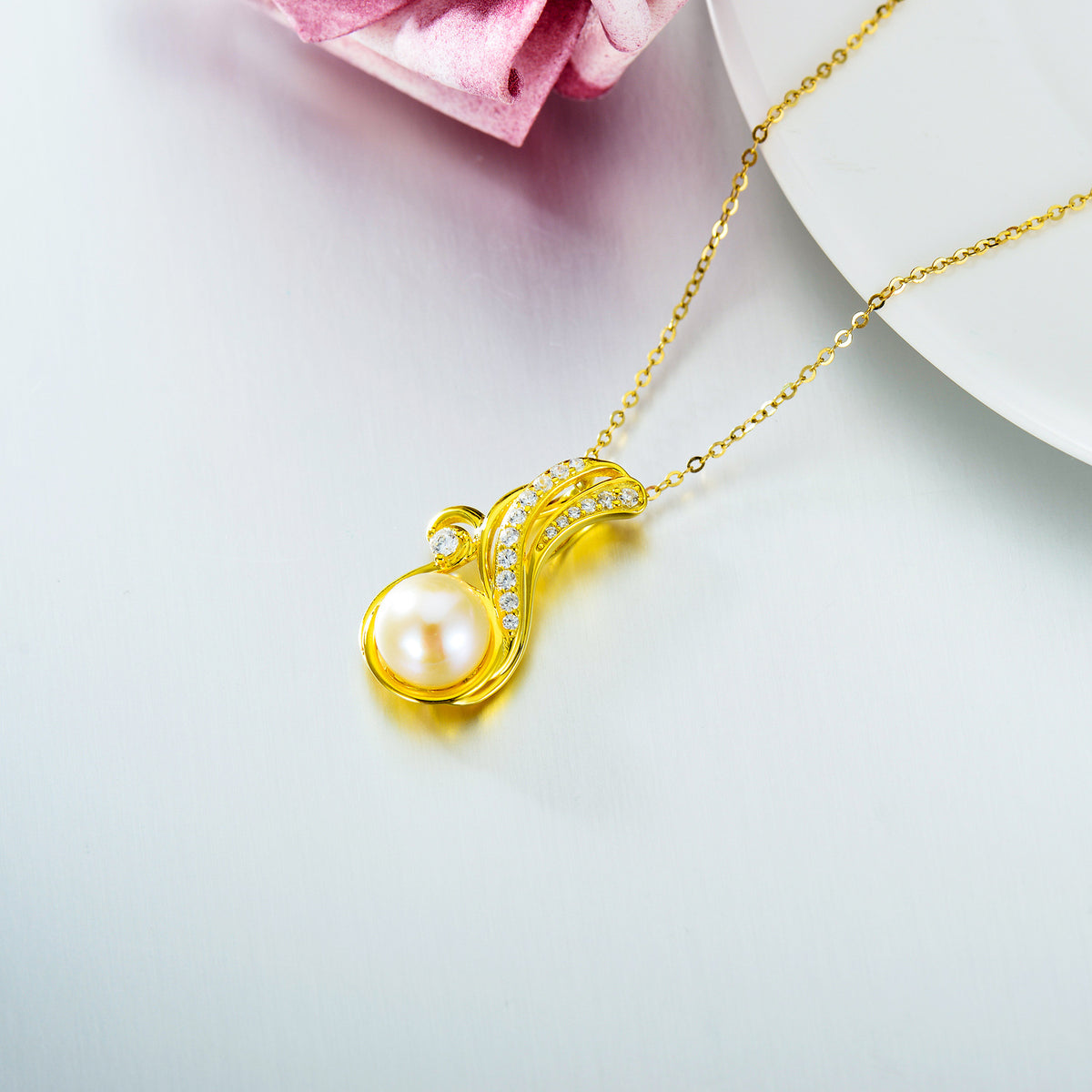 This Pendant Necklace is crafted from Premium Sterling Silver with Yellow Gold Plating, Featuring a Lustrous Pearl Elegantly Embraced in a Delicate Spray Design.