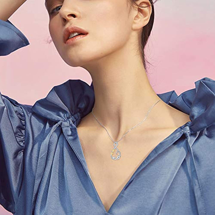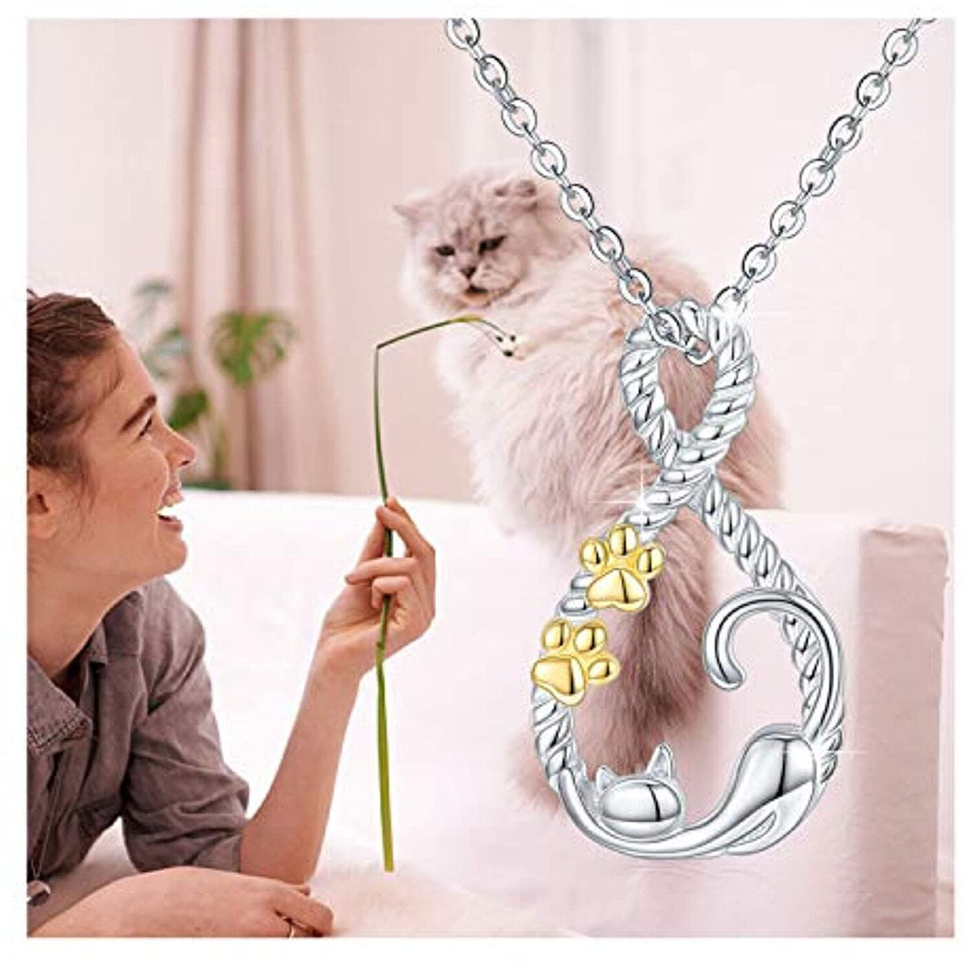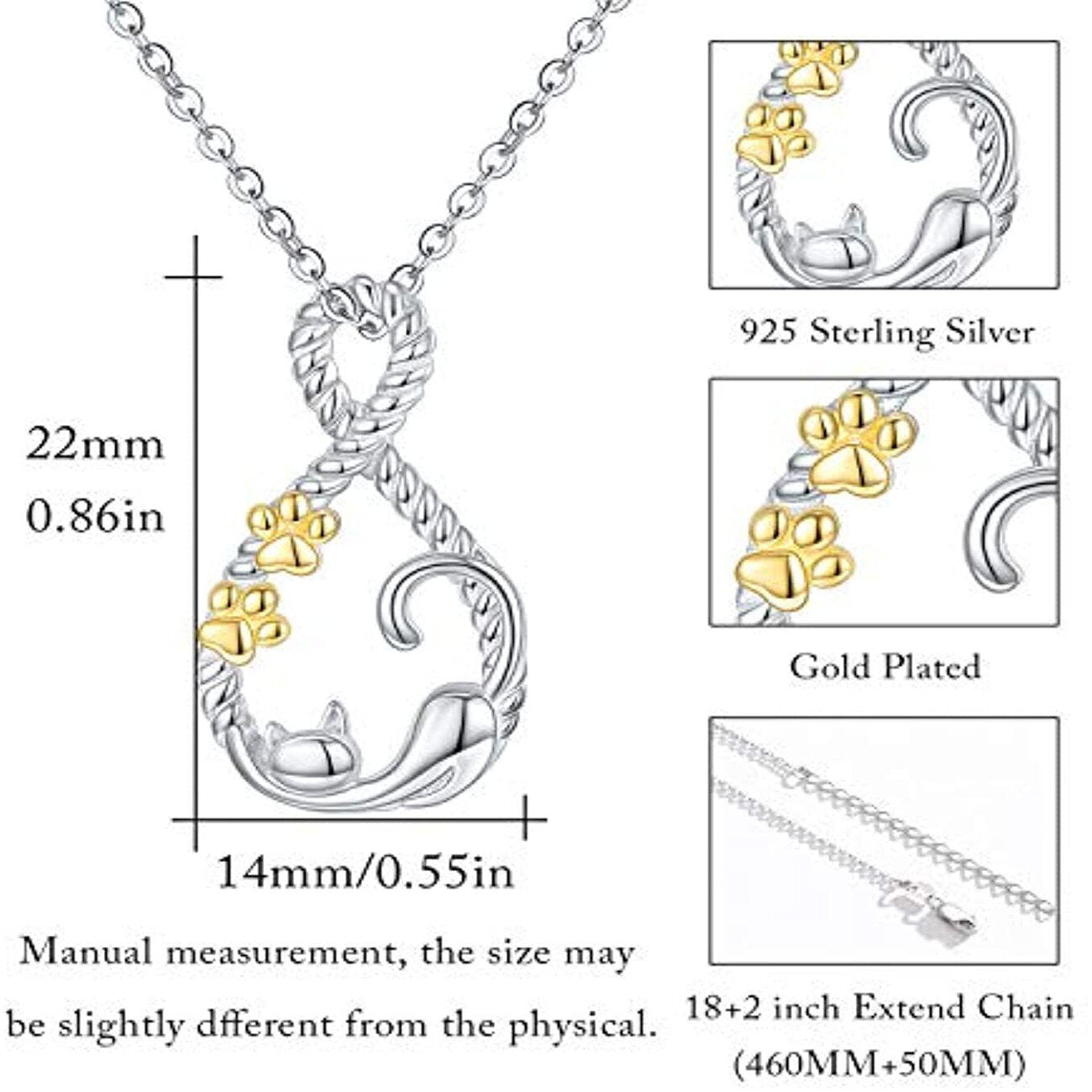 Sterling Silver Two-Tone Cat Paw And Infinity Symbol Pendant Necklace For Women