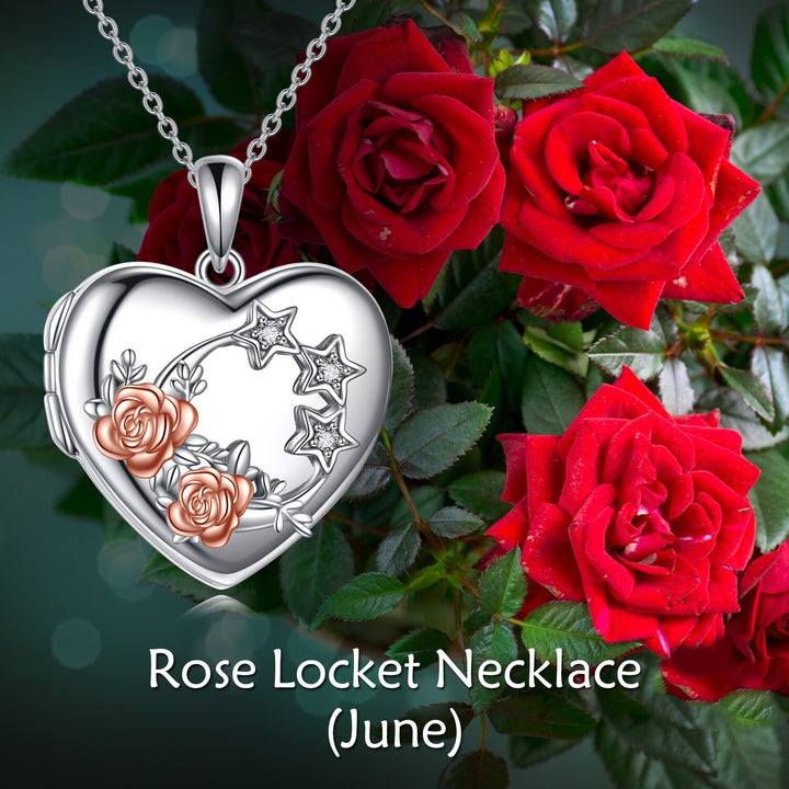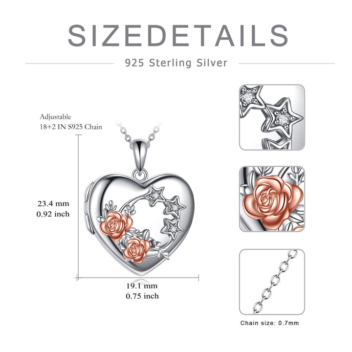 This Personalized Photo Locket Necklace is crafted from High-Quality Sterling Silver with White Gold Plating, adorned with Dazzling Zircon accents and a Charming Rose and Star Design.