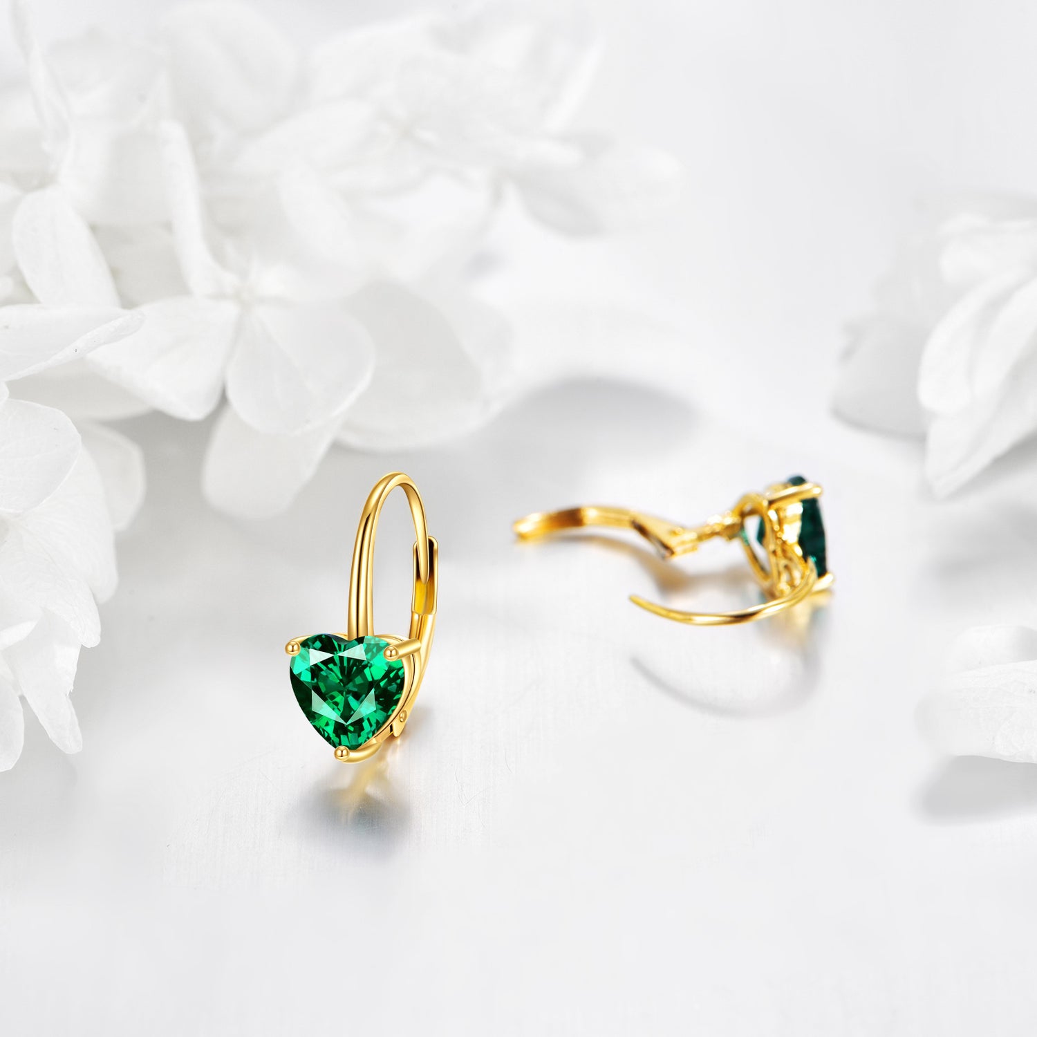 Sterling Silver with Yellow Gold Plated Heart Cut Emerald Heart Lever-back Earrings