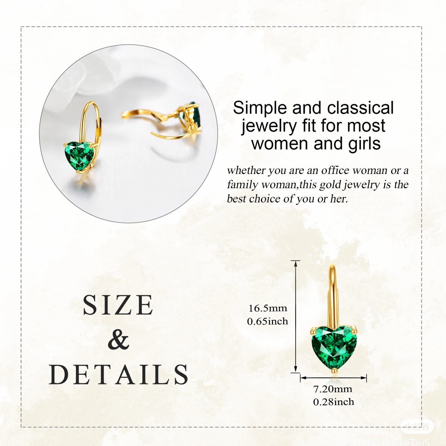 This Heart Cut Emerald Heart Lever-back Earrings by YFN are an exquisite accessory designed to elevate style with luxury and charm. Crafted from high-quality sterling silver and beautifully finished with luxurious yellow gold plating, these lever-back earrings feature dazzling emeralds expertly set within a delicate heart shape, symbolizing love and affection. The rich green color of the emeralds adds captivating allure, making these earrings a versatile, sophisticated choice for everyday flair or special occasions.