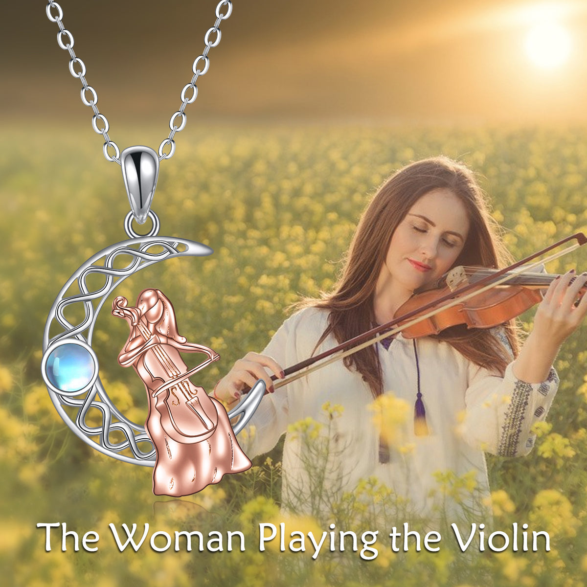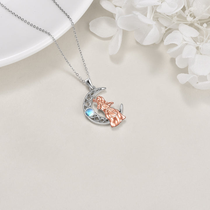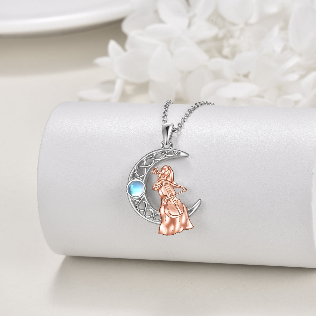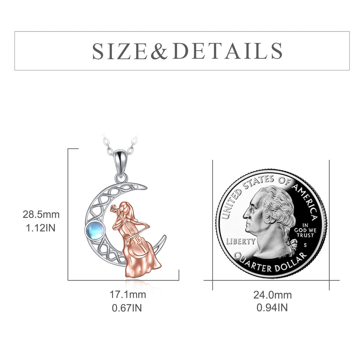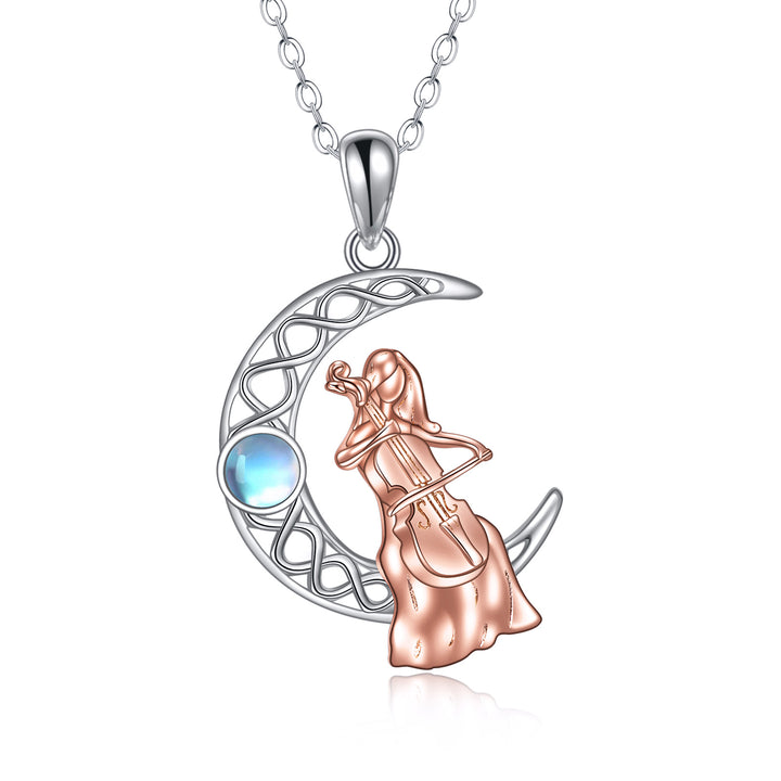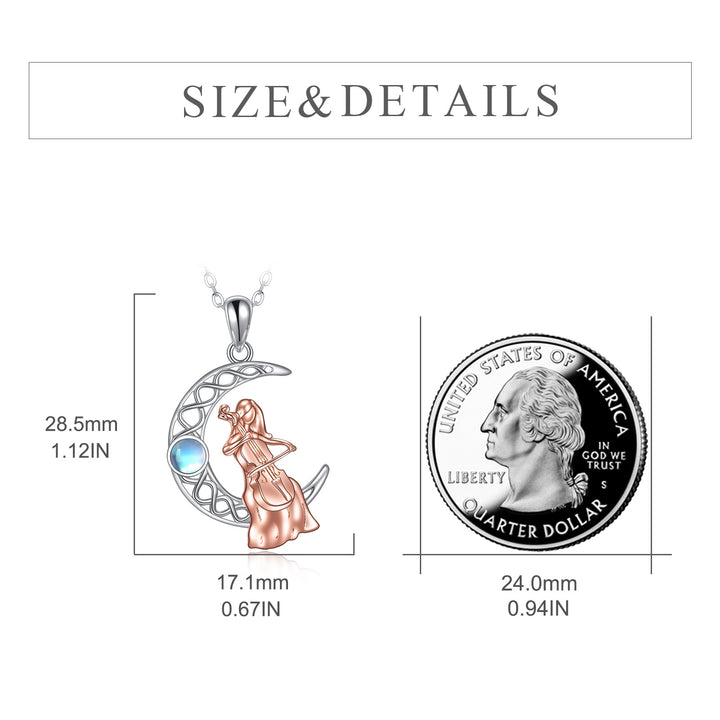 Sterling Silver Moonstone Spiral Knot & Moon Music Symbol Necklace for Women