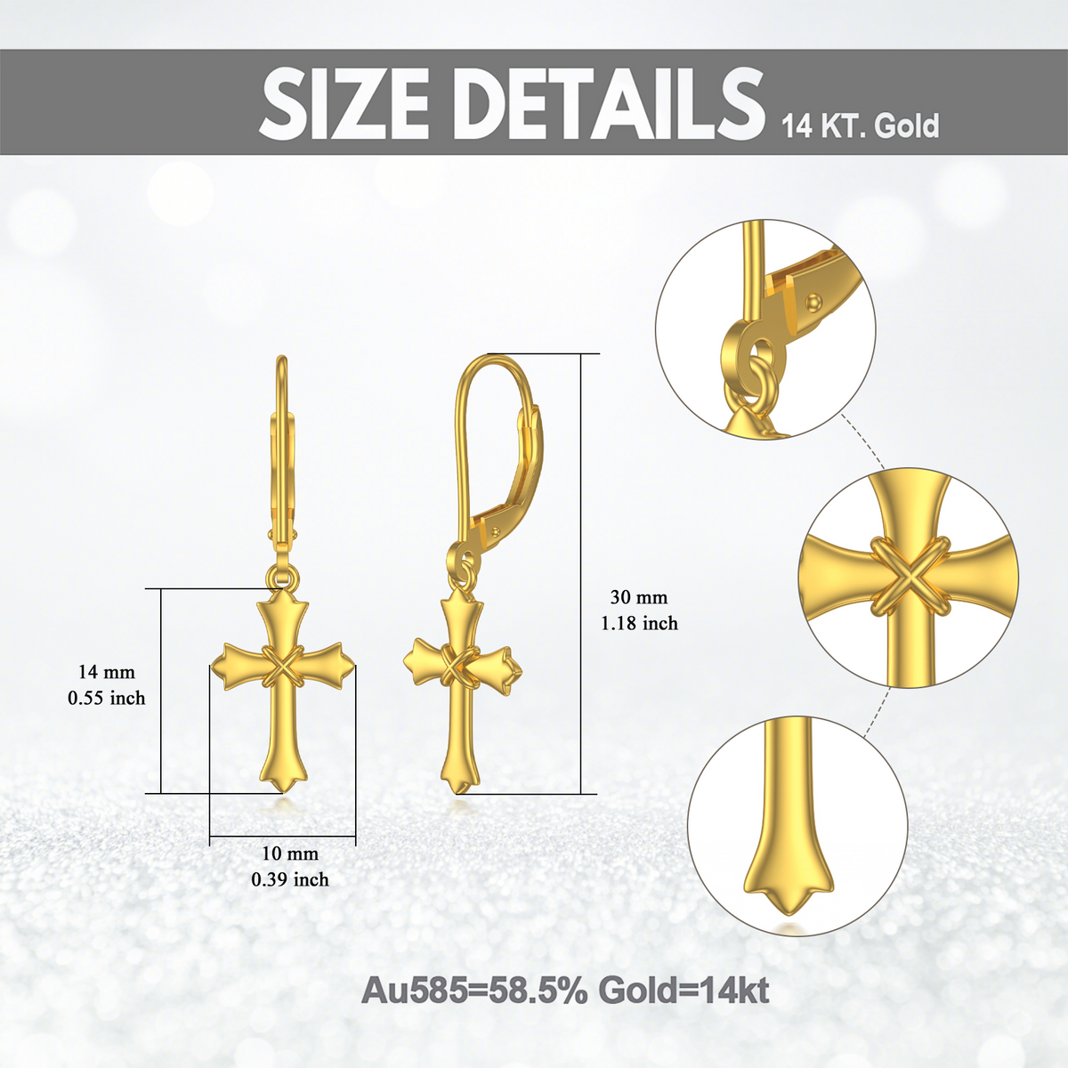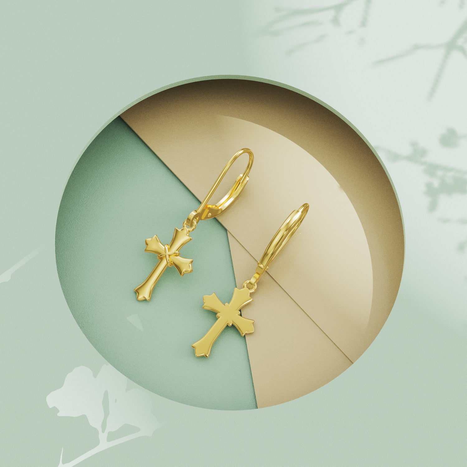 Made from high-quality 14K Gold, these stone-free Lever-back Earrings feature a classic Cross shape.