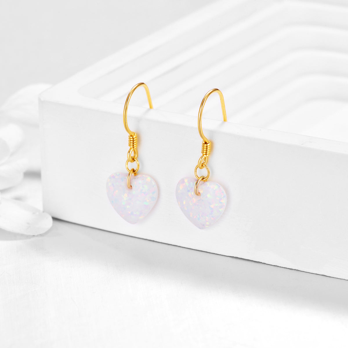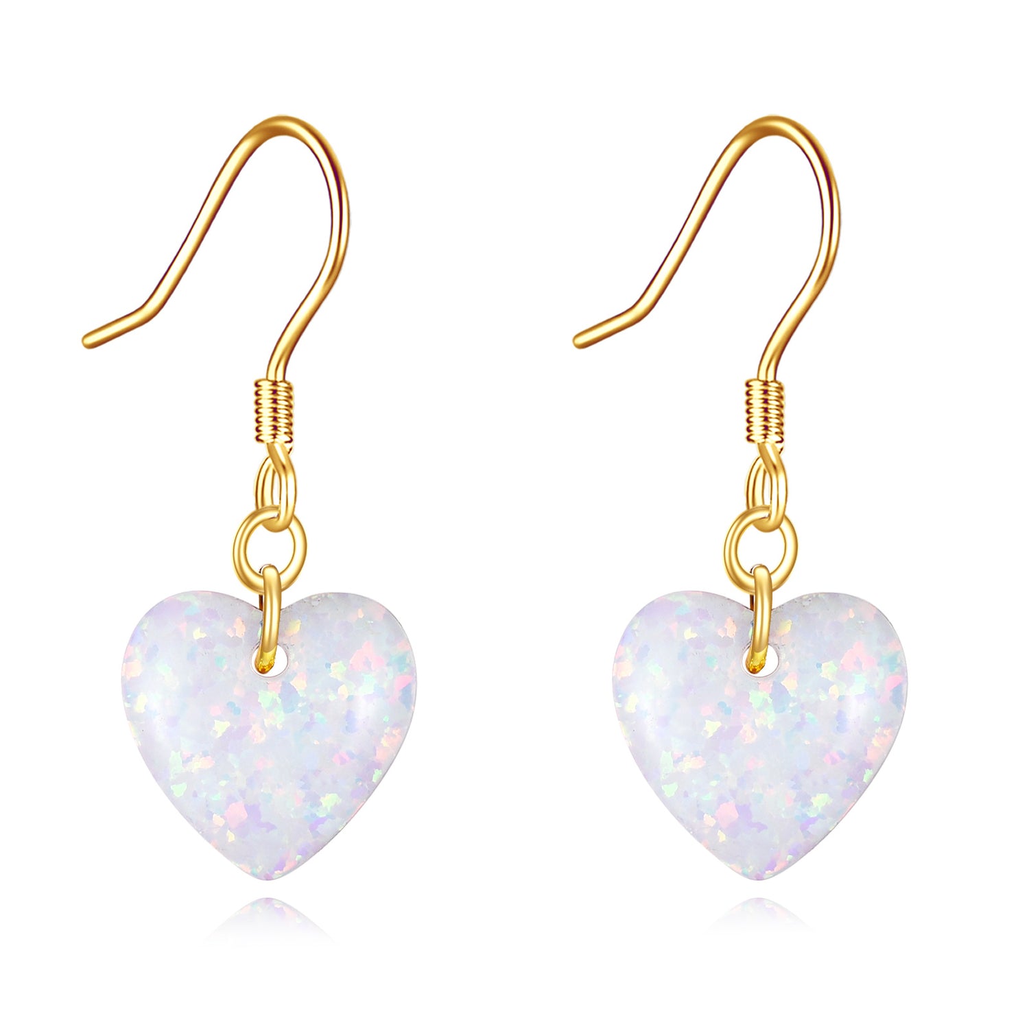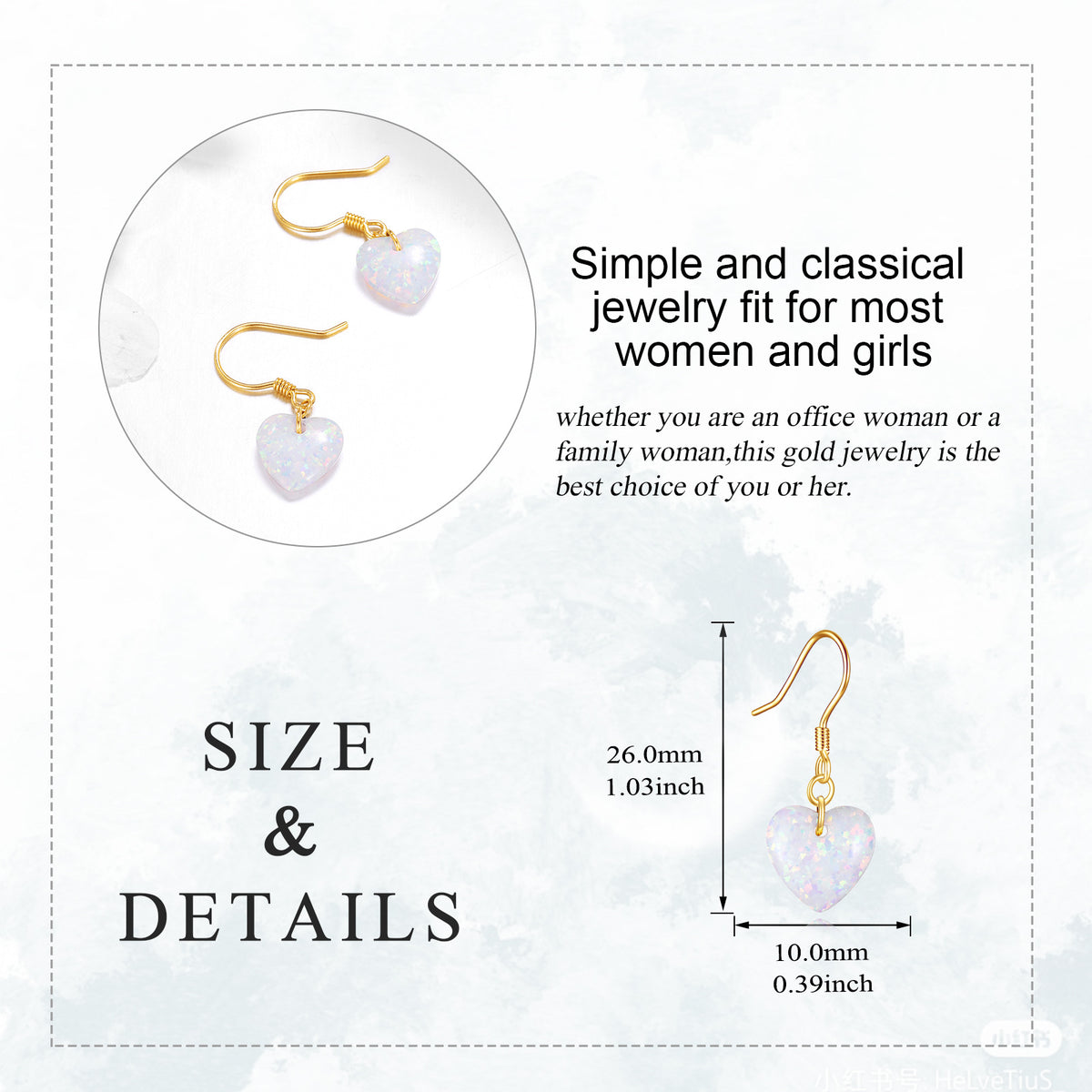 Crafted in 14K gold with heart-shaped opal stones. Lever-back closure. Measurements and opal dimensions per manufacturer.