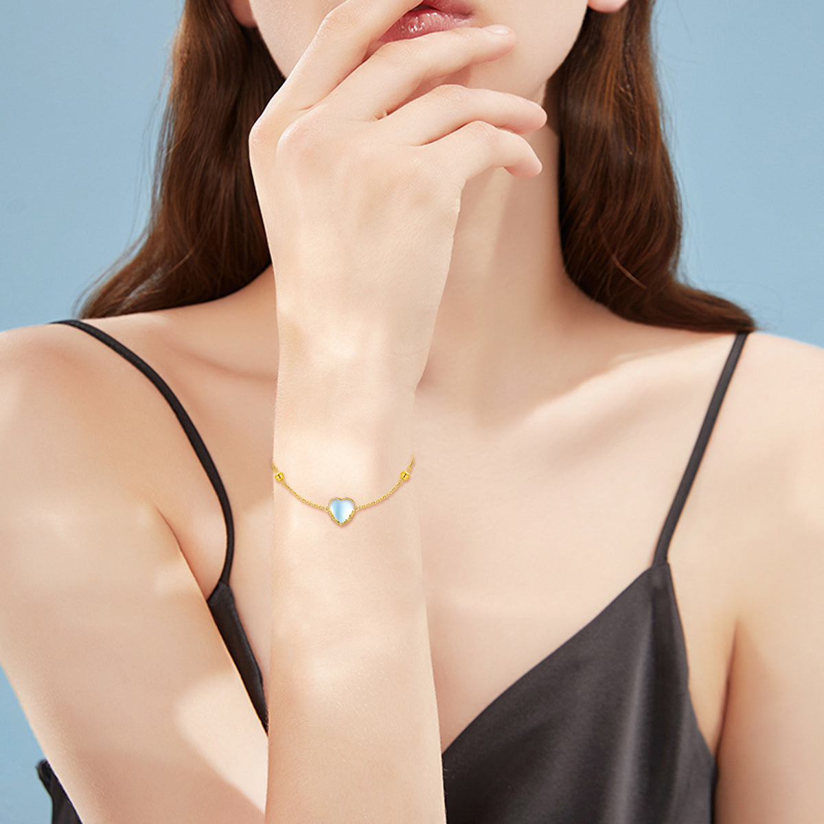 This 14K Gold Heart Moonstone Charm Bracelet For Women by YFN elevates elegance with a blend of classic charm and contemporary flair. Crafted from genuine 14K gold, this exquisite bracelet showcases a heart-shaped Charm encasing a captivating blue moonstone, symbolizing love and serenity. Its lustrous finish and sophisticated design make it a perfect gift or a stunning addition to any jewelry collection, designed exclusively for women who appreciate timeless beauty.