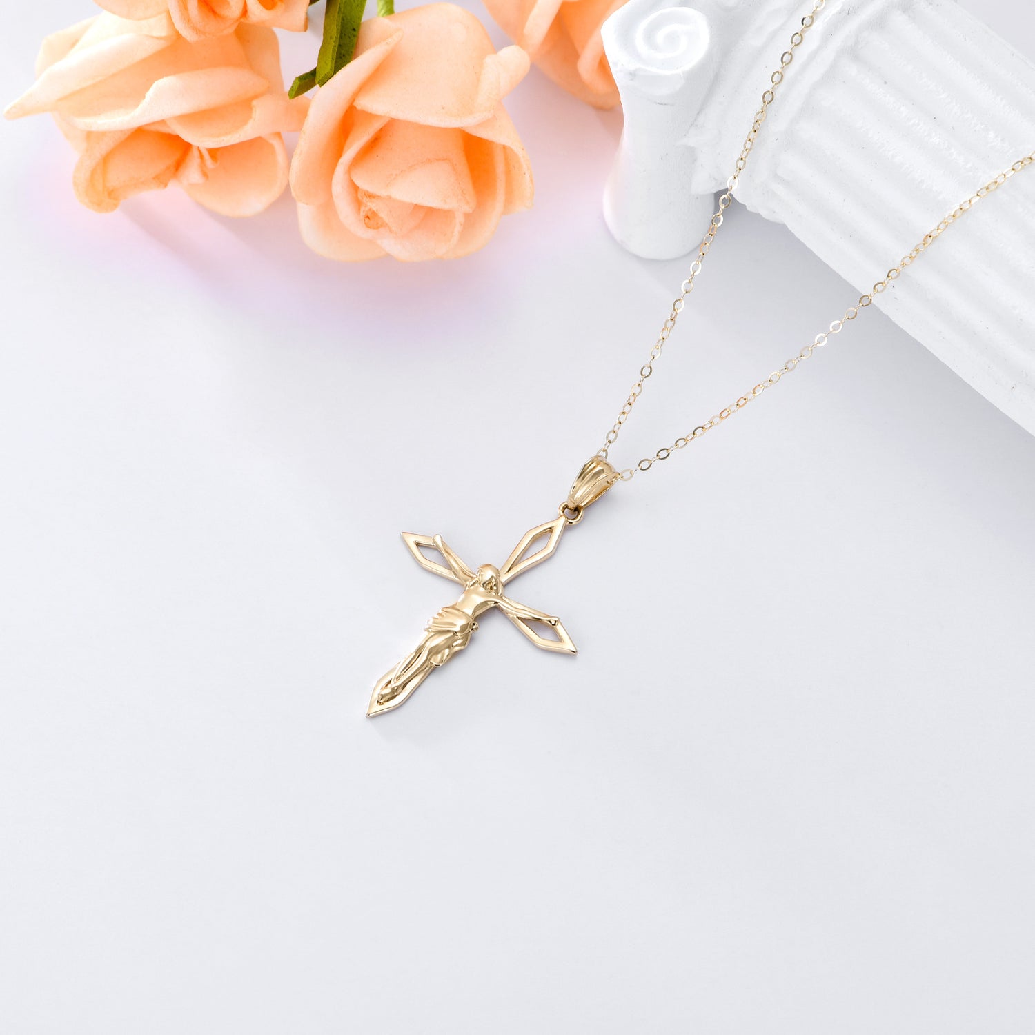 14K Gold Cross & Jesus Pendant Necklace