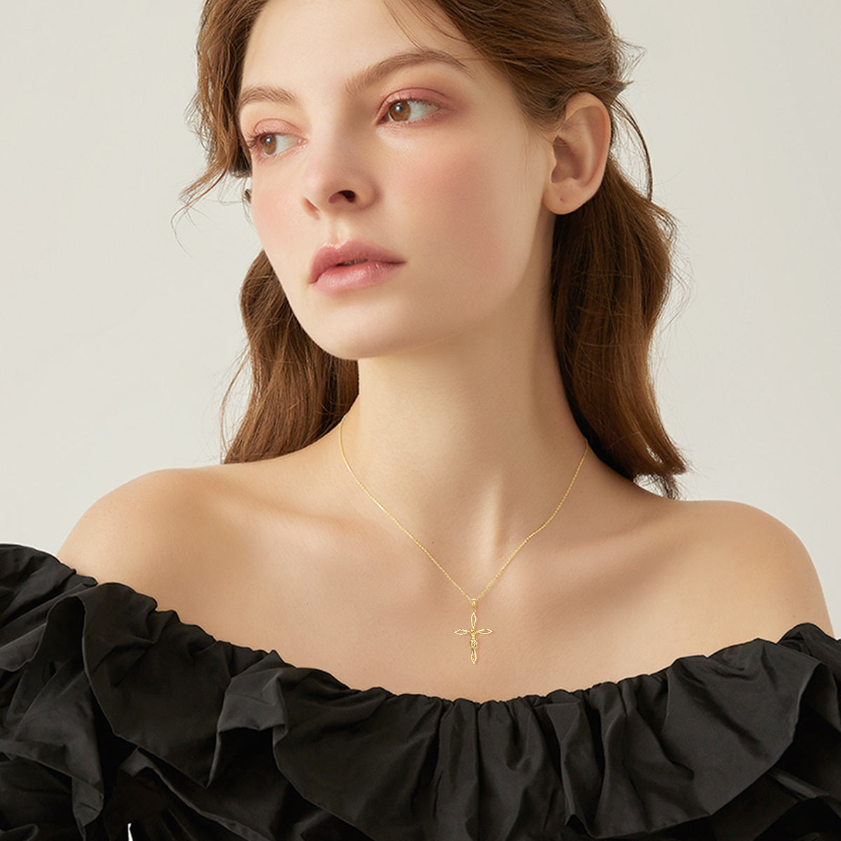 This 14K Gold Cross & Jesus Pendant Necklace by YFN offers a beautifully refined symbol of spirituality, designed for women who appreciate understated elegance in their devotional jewelry. The minimalist cross silhouette highlights the essence of faith while maintaining a modern, clean aesthetic suited for everyday wear or special moments. Crafted to honor personal conviction, the piece carries a timeless emotional resonance without the use of stones, allowing the gold’s natural radiance to shine. Perfect as a meaningful gift or personal keepsake, it blends classic reverence with contemporary sophistication.