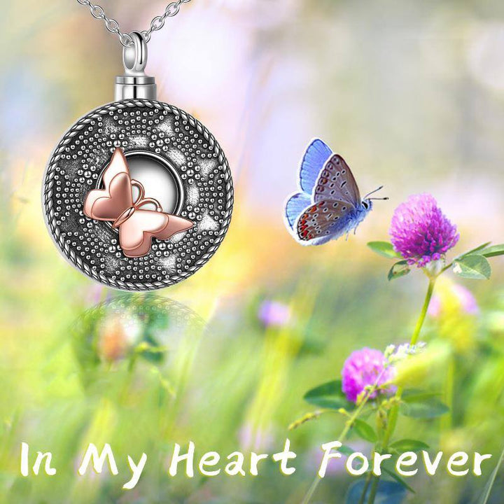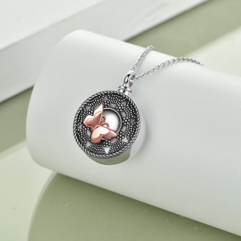 Sterling Silver Two-tone Butterfly Urn Necklace for Ashes