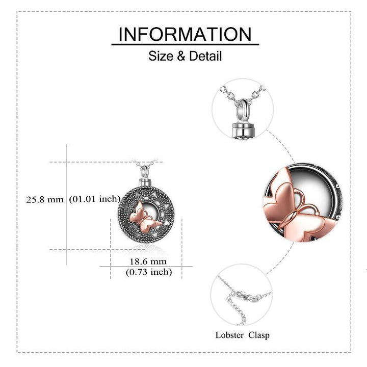 This Sterling Silver Two-tone Butterfly Urn Necklace for Ashes by YFN offers a heartfelt balance of sentiment and elegance, designed for women seeking a meaningful way to keep loved ones close. The butterfly motif symbolizes transformation, hope, and spiritual connection, beautifully sculpted in a blend of silver oxide and rose gold tones. Stone-free and intricately detailed, the pendant provides a discreet compartment for ashes, combining memorial significance with artistic grace. Versatile and timeless, this necklace serves as a comforting keepsake and an elegant accessory suitable for daily wear.