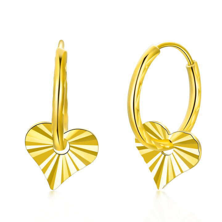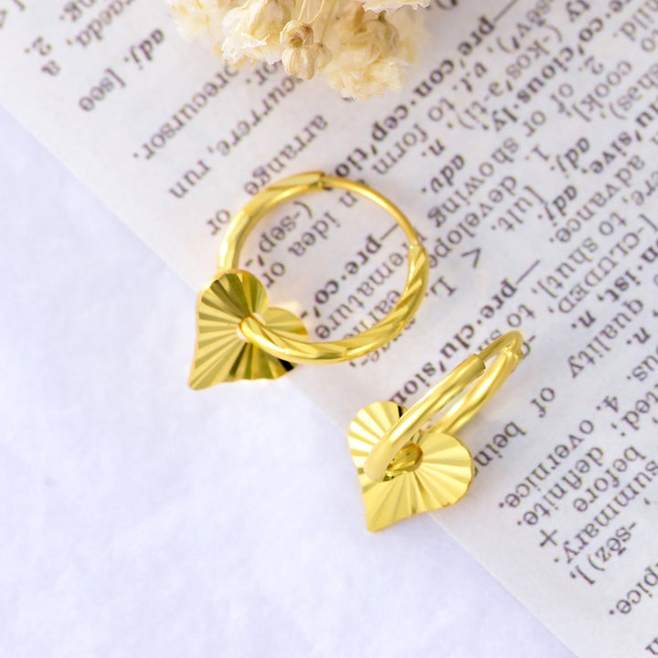 Handcrafted hoop earrings made from 18K solid gold. Features a heart shape. Stone-free design.