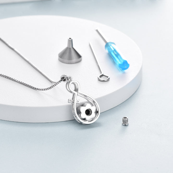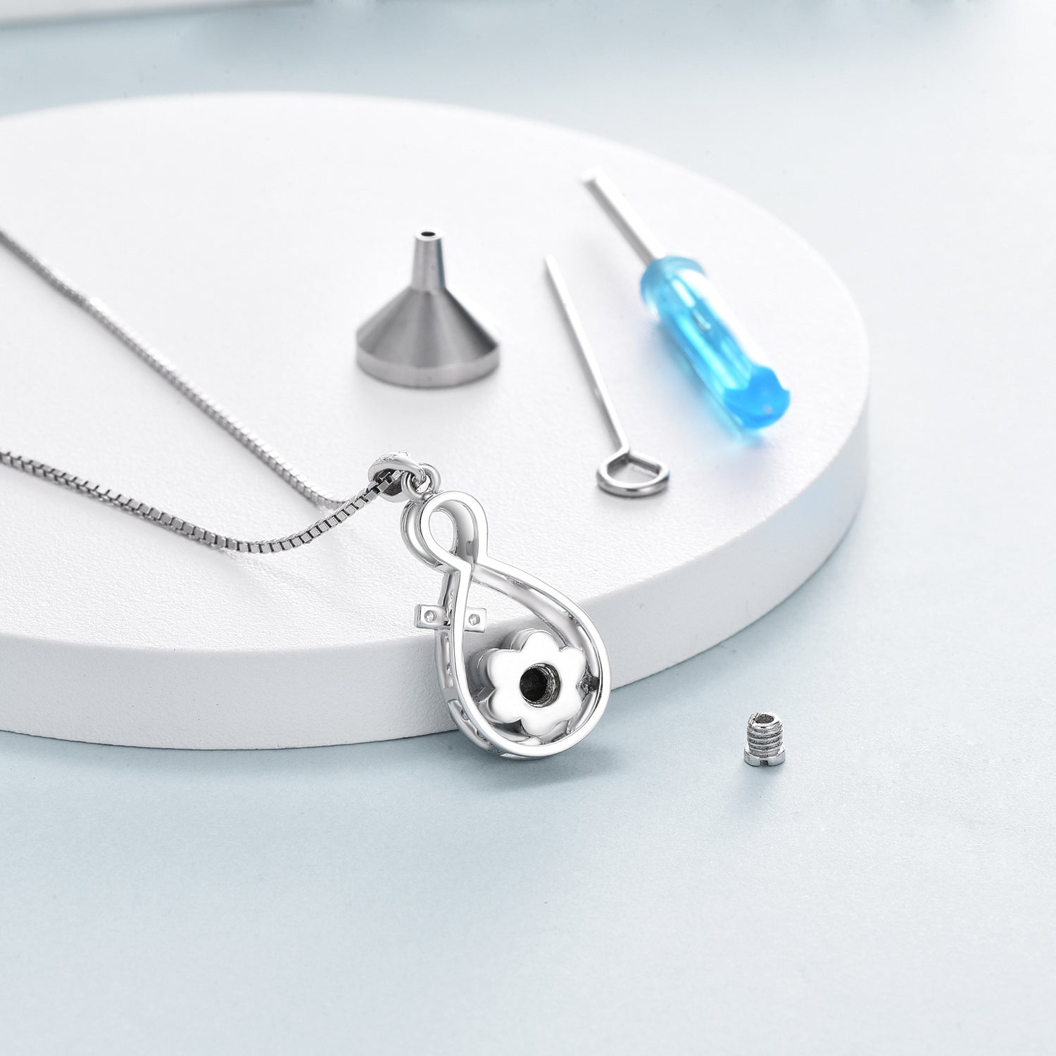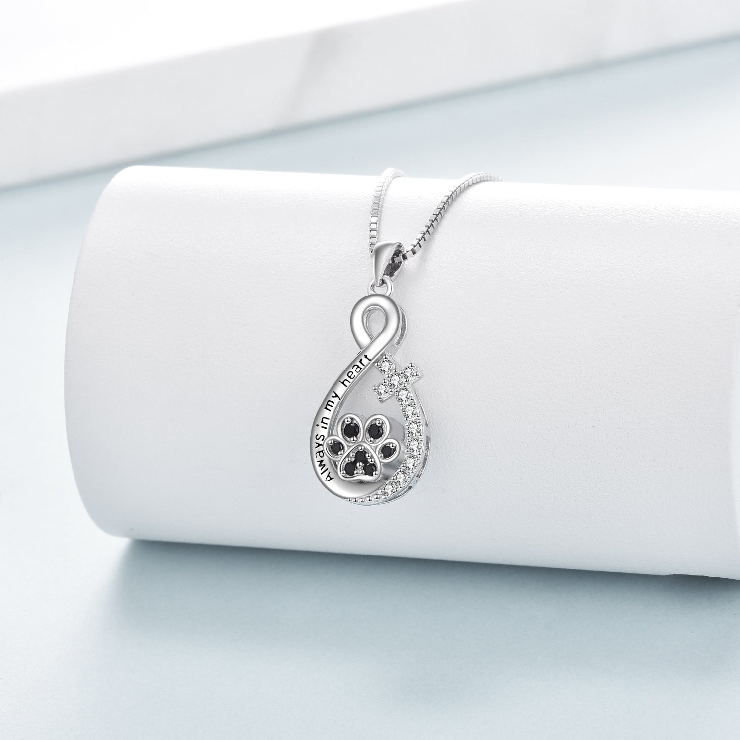 Sterling Silver Round Cubic Zirconia Paw With Cross Infinity Symbol Urn Necklace For Ashes With Engraved Word For Women