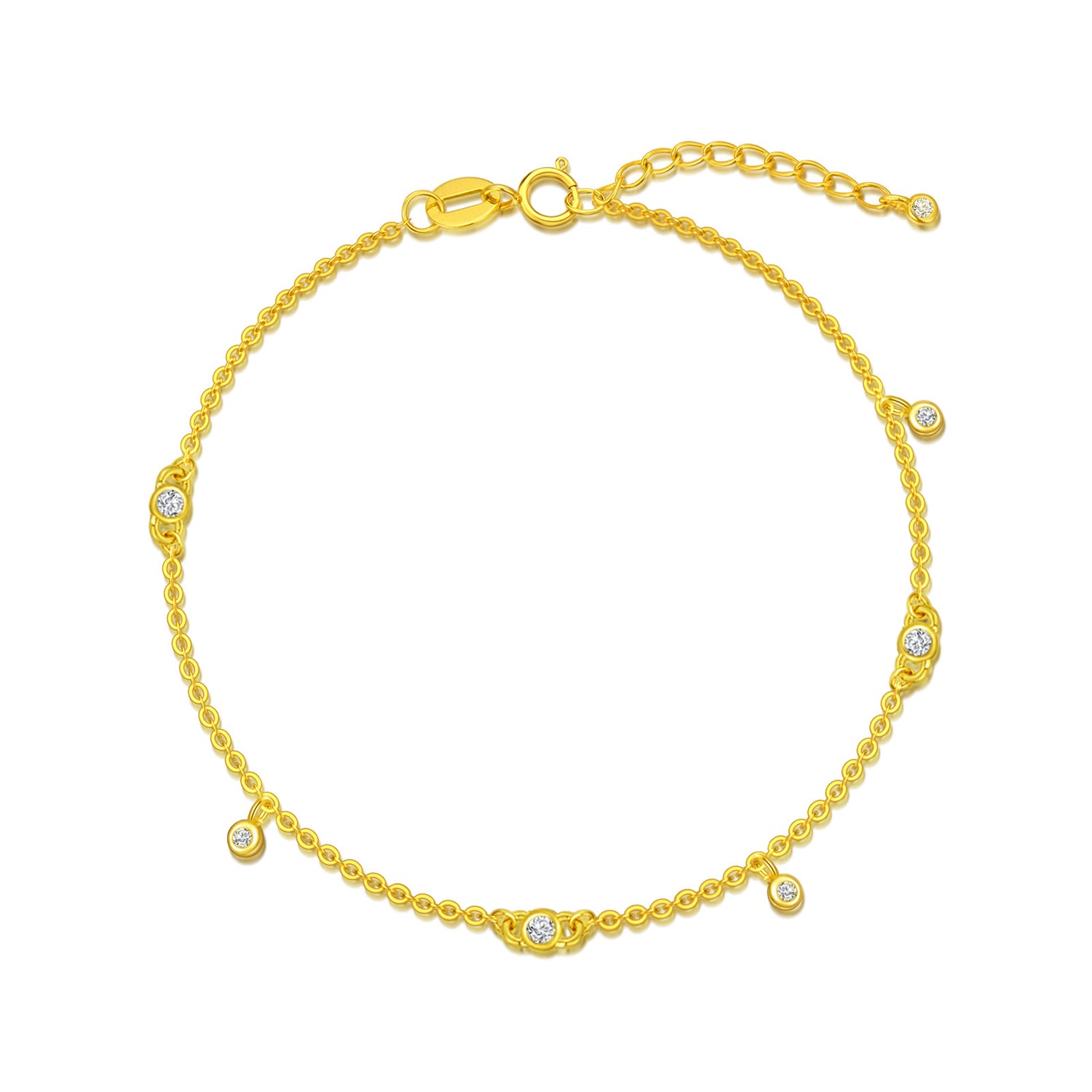 This Circular Shaped Charm Bracelet is crafted from High-Quality 14K Gold and Adorned with Dazzling Clear Cubic Zirconia Stones.