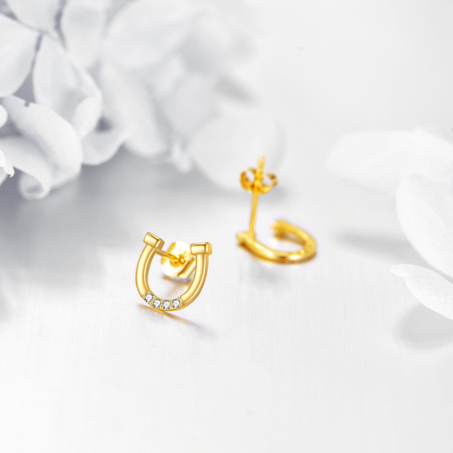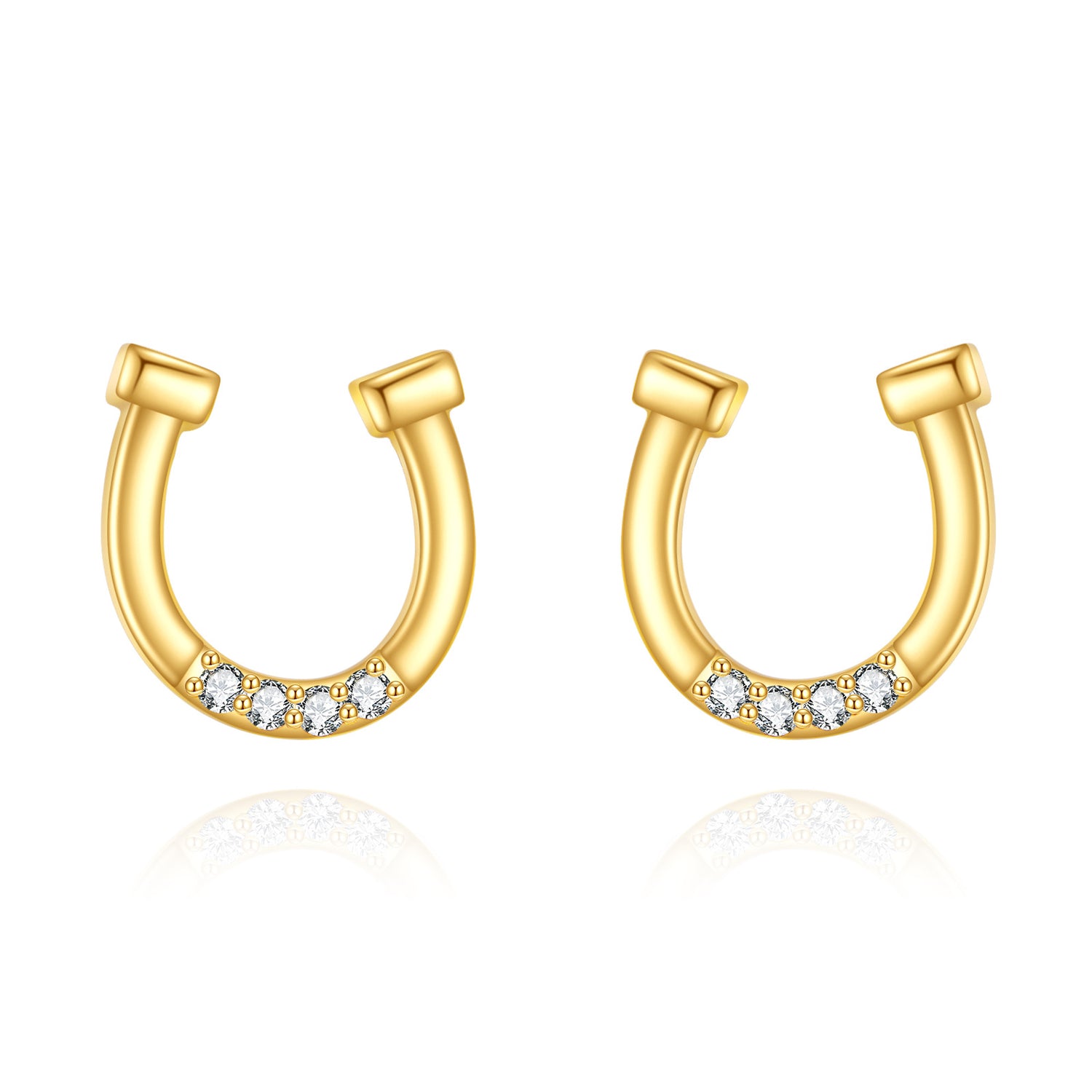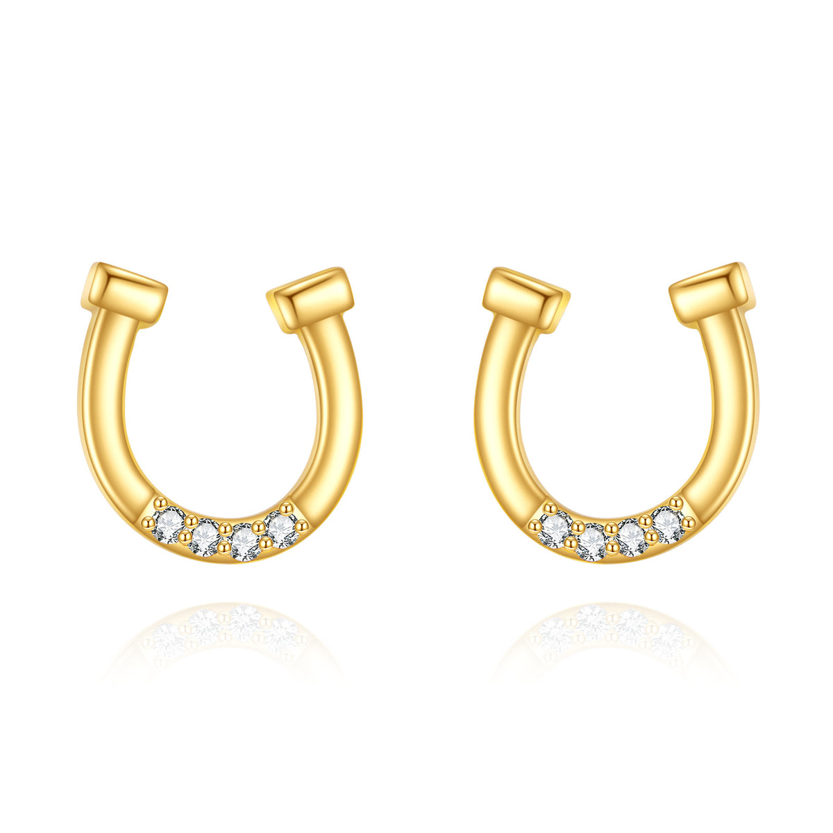 These 14K Gold Moissanite Horseshoe Stud Earrings by YFN are an exquisite blend of elegance and exceptional sparkle, symbolizing good luck and protection. Crafted from high-quality 14K gold, these horseshoe-shaped stud earrings showcase the brilliance of Moissanite stones, which capture light beautifully. They are lightweight and comfortable, making them an ideal, luxurious addition for women to shine bright on both casual and formal occasions.