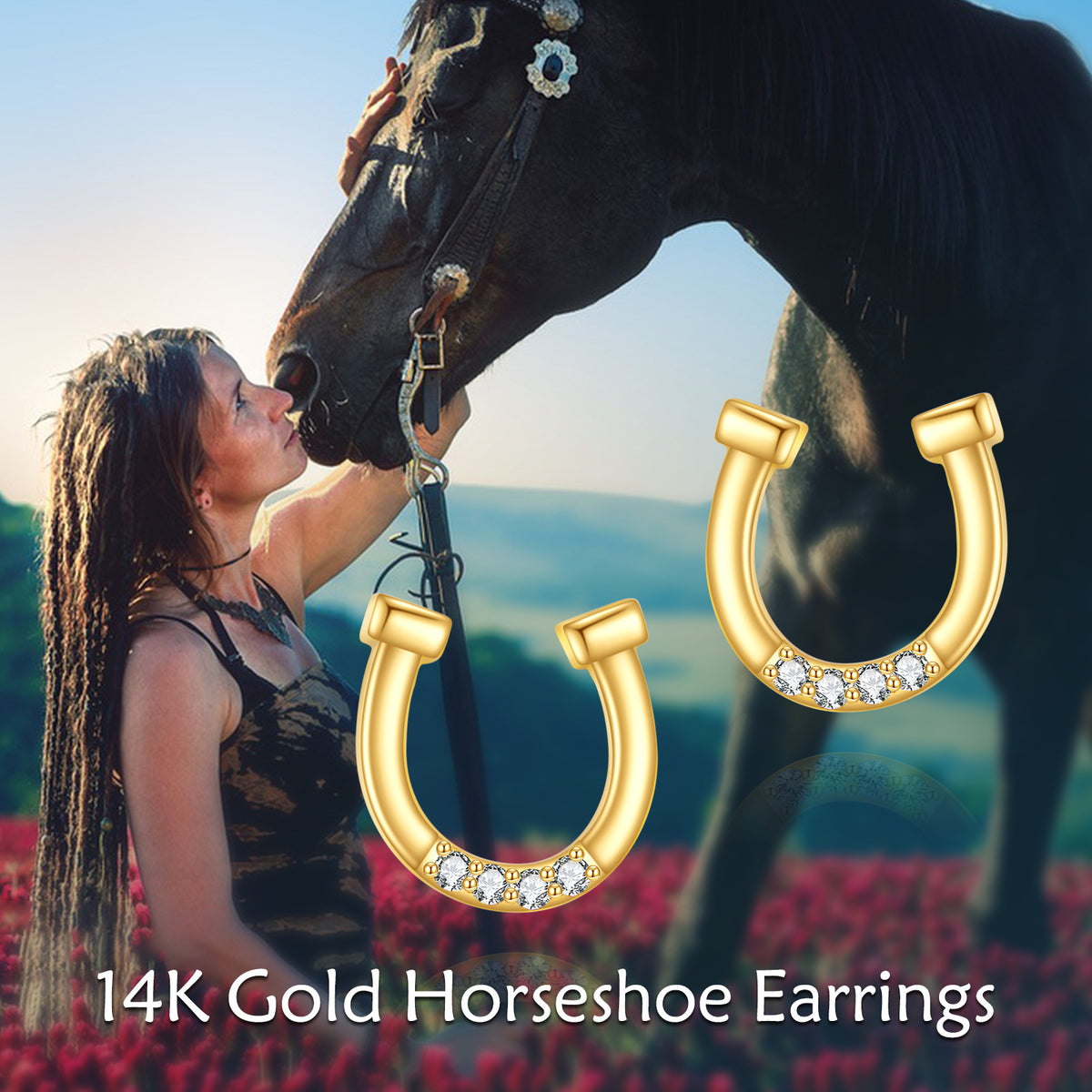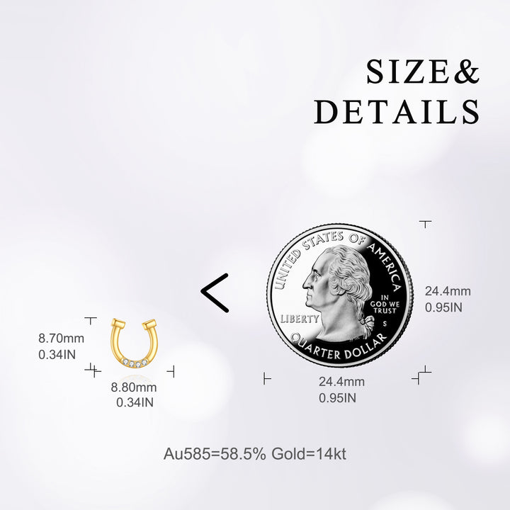 Crafted from solid 14K Gold. These are Stud Earrings featuring a Horseshoe shape, set with Moissanite stones.