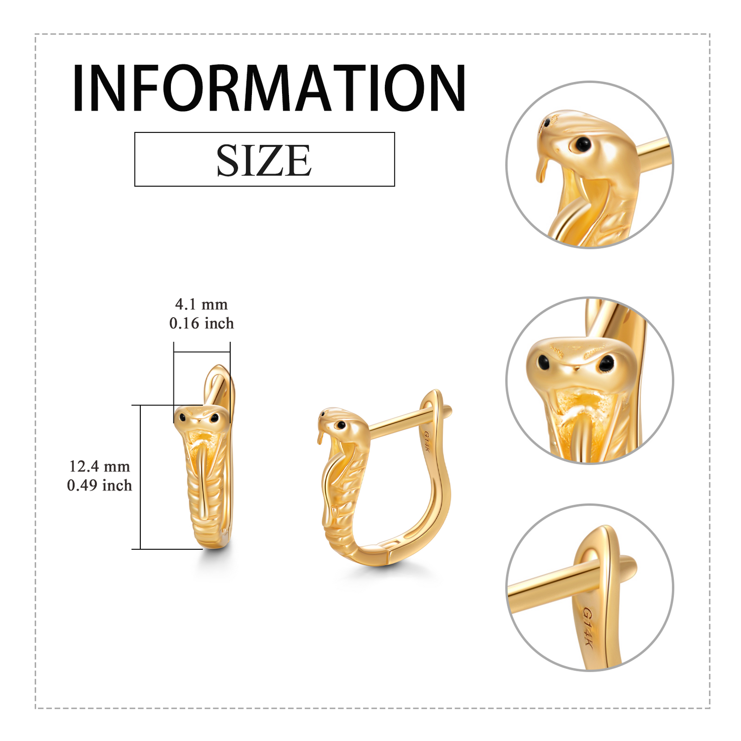 These 14K Gold Snake Stud Earrings by YFN offer a sleek, sophisticated, and stone-free look for women. Expertly crafted from premium 14K gold, these snake-themed stud earrings are both durable and luxurious. The minimalist design, free from stones, ensures a versatile accessory that pairs effortlessly with casual or formal attire, making it an essential addition to any jewelry collection for women who appreciate understated sophistication and unique design.