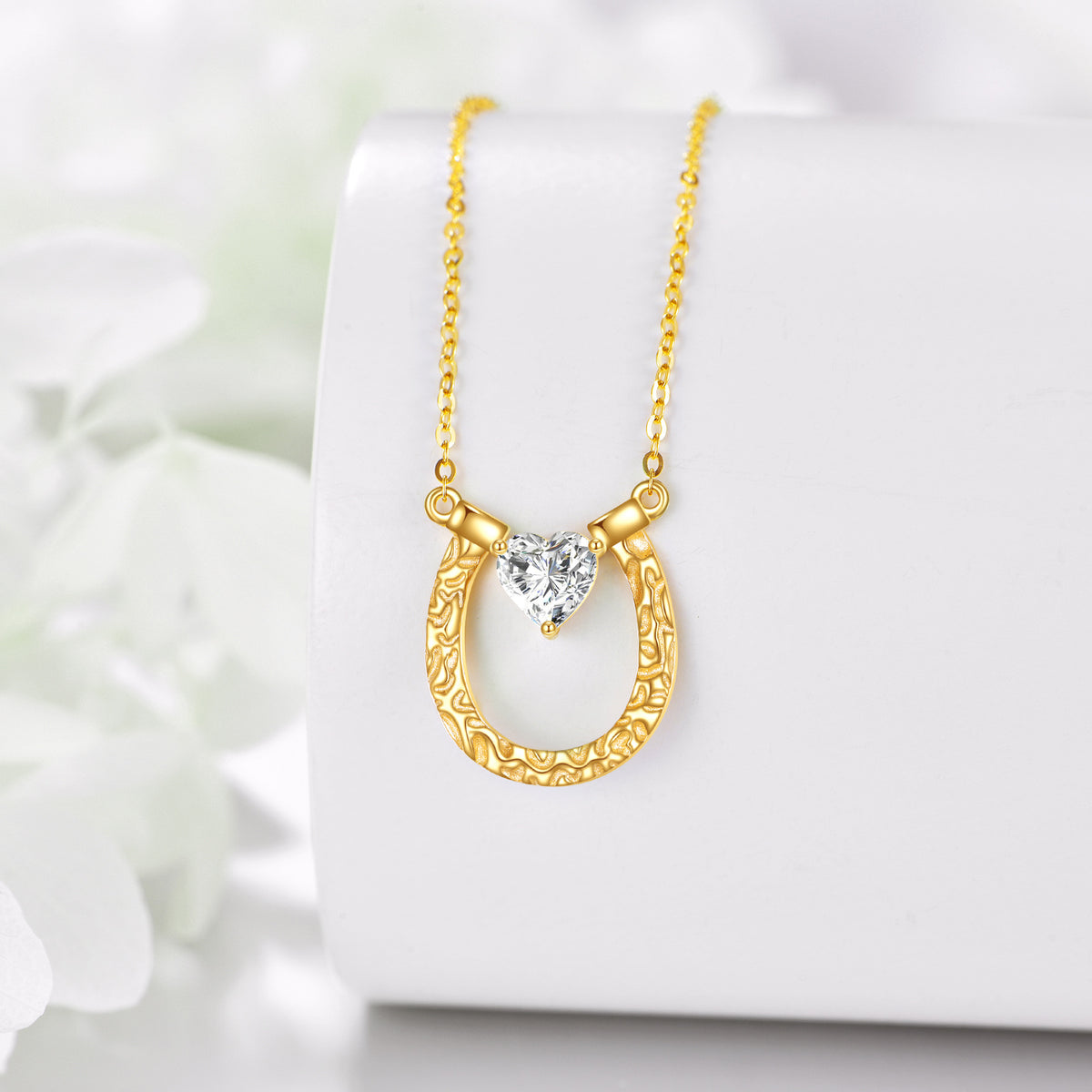 Crafted from 14K solid gold. Designed as a pendant necklace. Features a horseshoe motif and a heart shape. Embellished with Moissanite stones.