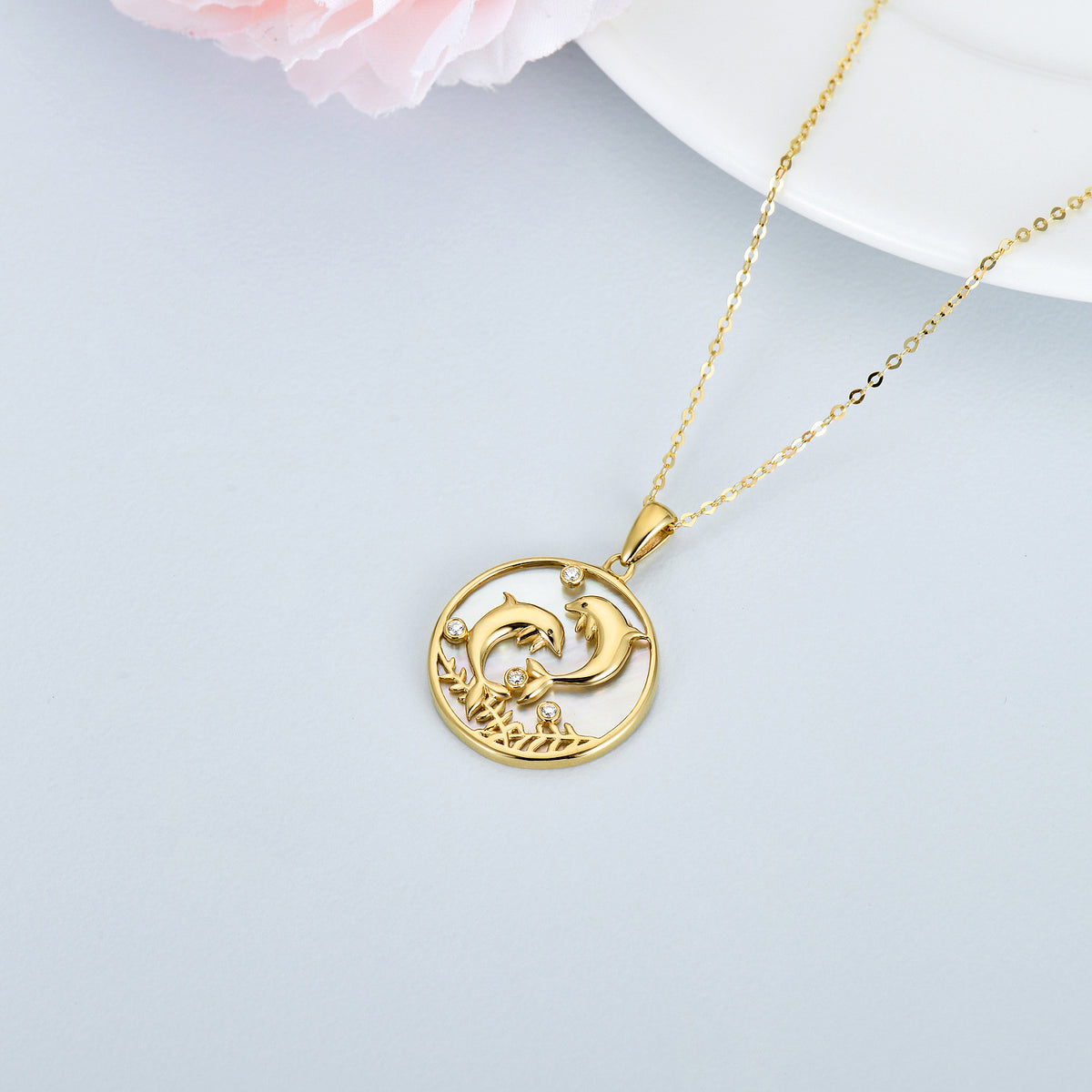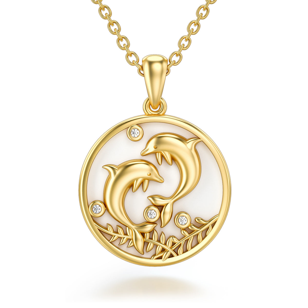 14K Gold Moissanite Dolphin Pendant Necklace