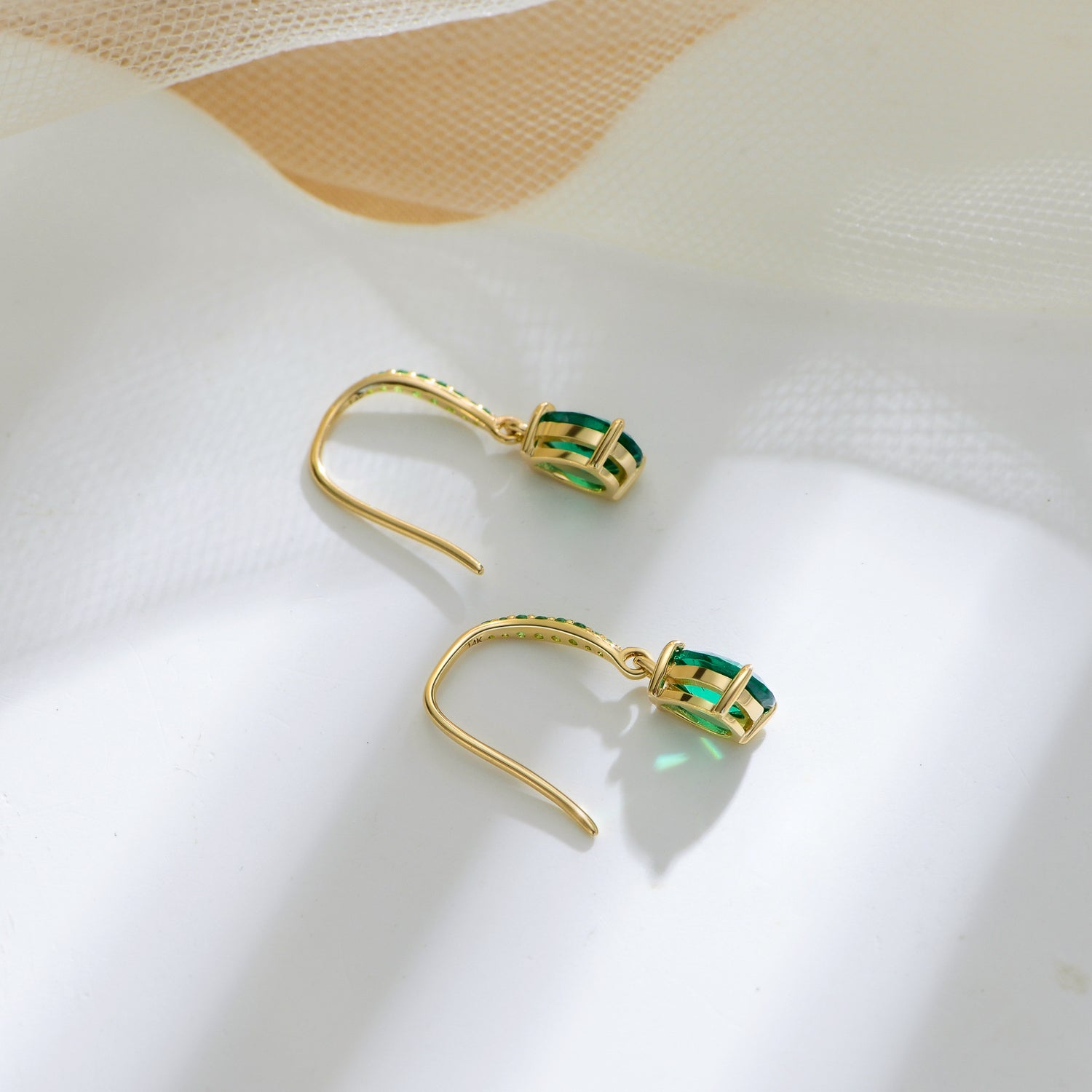 14K Gold Emerald Cubic Zirconia Drop Earrings For Women