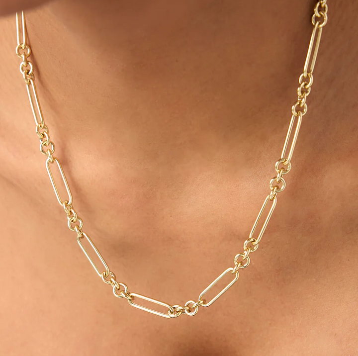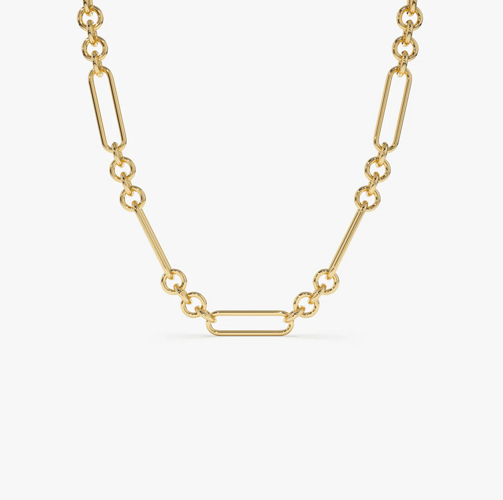 14k Mixed Link Paperclip Bolo Chain Necklace 4mm