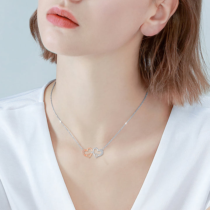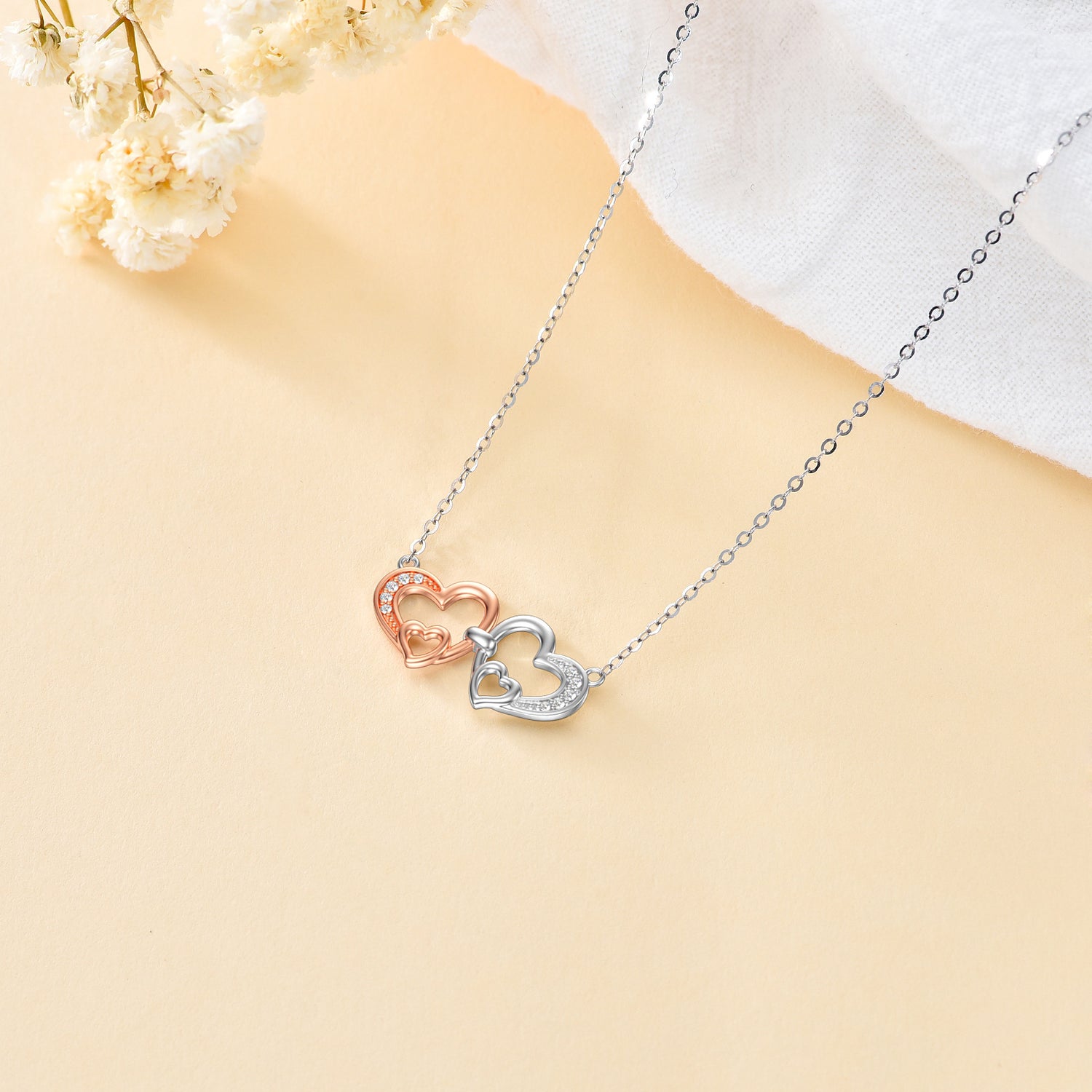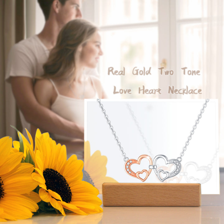 9K Two-Tone Circular Cubic Zirconia Interlocking Hearts Pendant Necklace For Women Best Friend