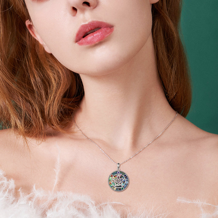 Sterling Silver Abalone Shellfish Chakras & Triple Moon Goddess Pendant Necklace