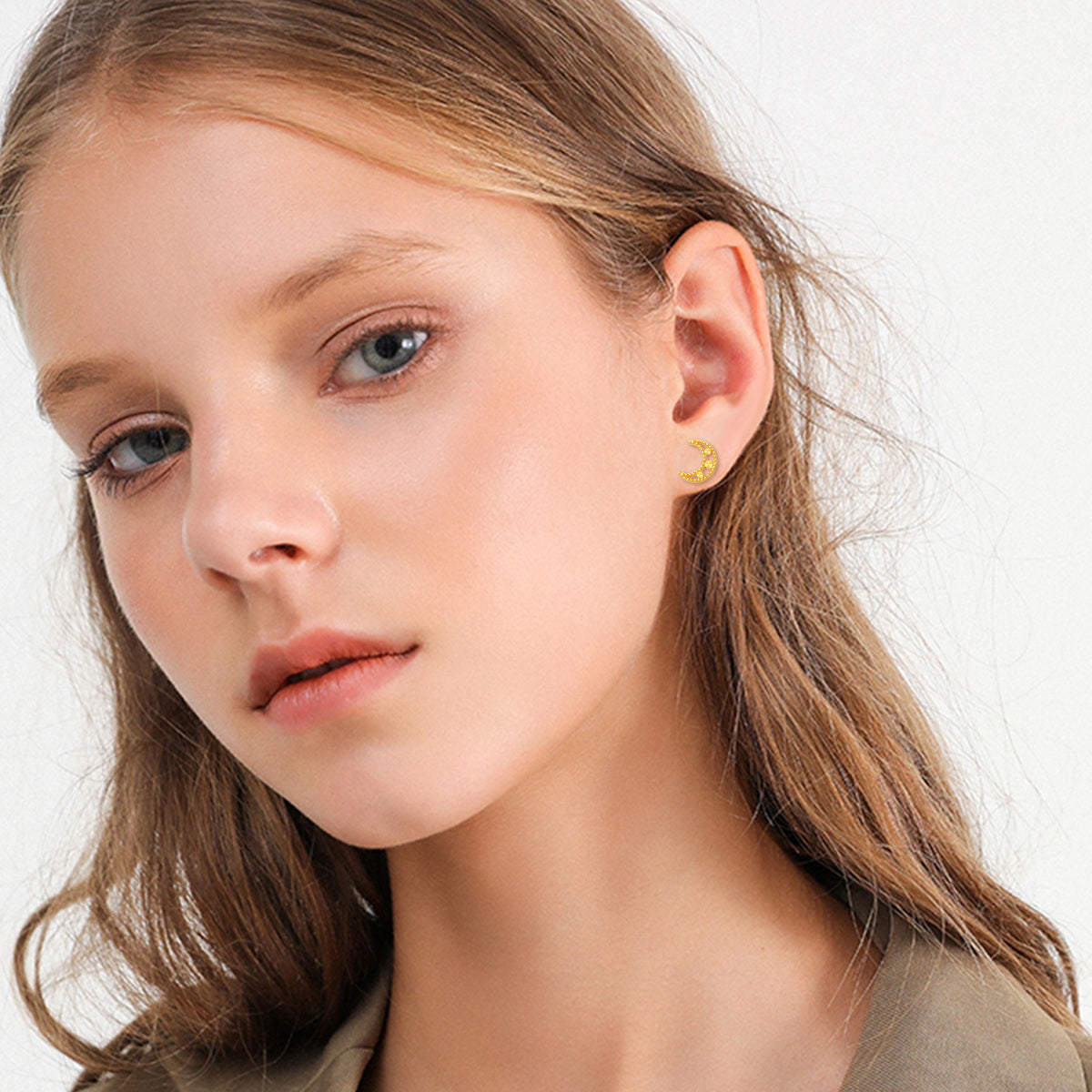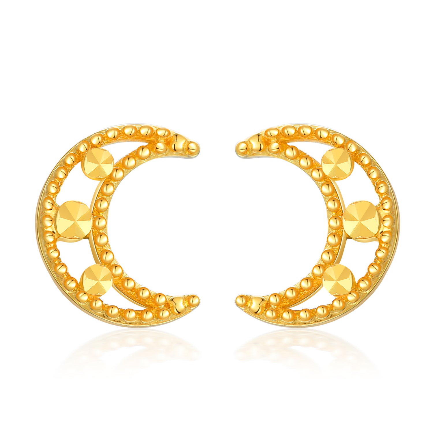 18K Gold Moon Stud Earrings