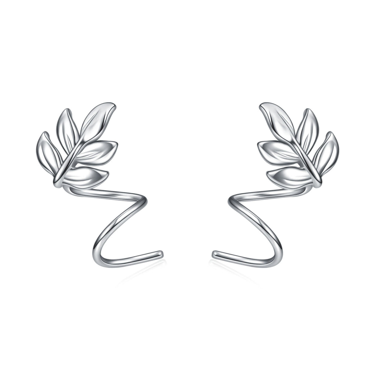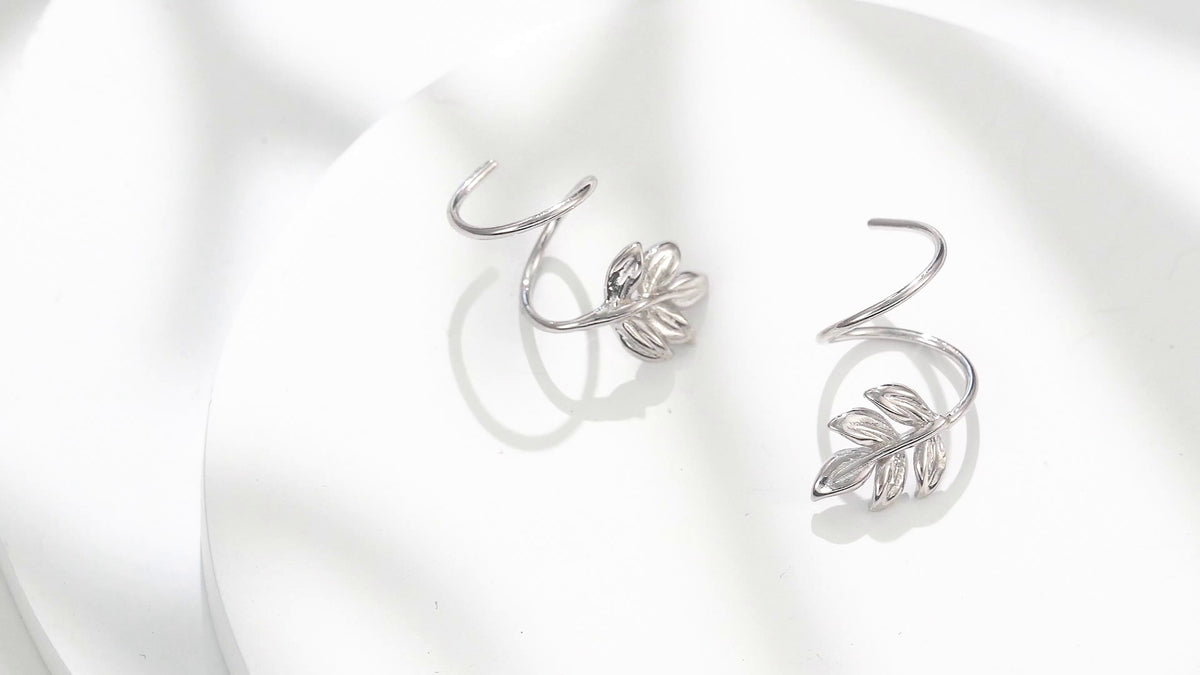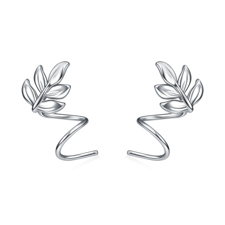 Crafted from Sterling Silver with White Gold Plating, these no-stone Climber Earrings are meticulously crafted to resemble delicate Leaves.