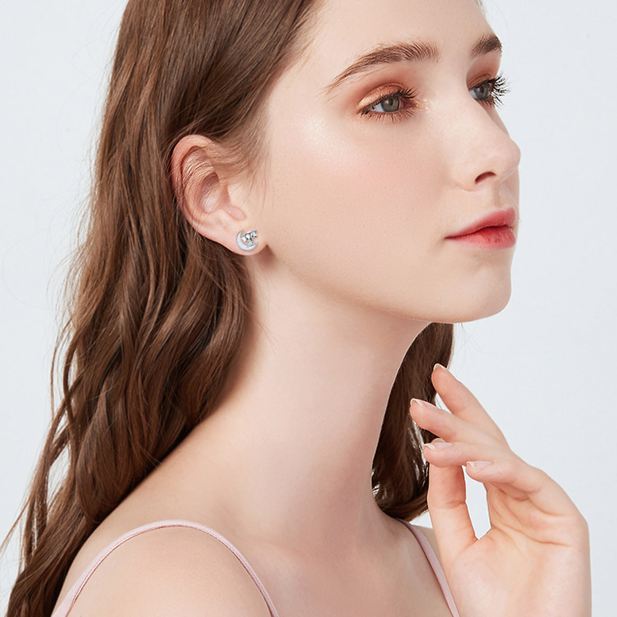 These Sterling Silver Opal Elephant & Moon Stud Earrings by YFN are the epitome of elegance and whimsical sophistication for women. These White Gold Plated Stud Earrings are intricately designed with mesmerizing Opal Stones shaped like charming Elephants and mystic Moons. The lustrous white gold plating enhances the opals' kaleidoscope of colors, offering a hypoallergenic and durable option for everyday wear.