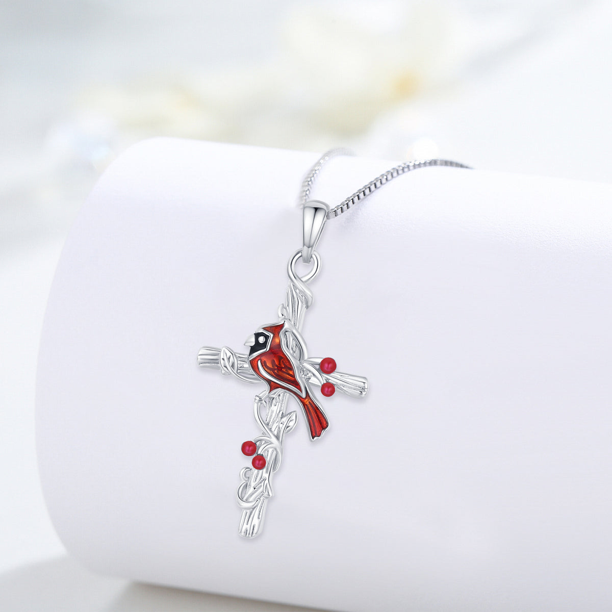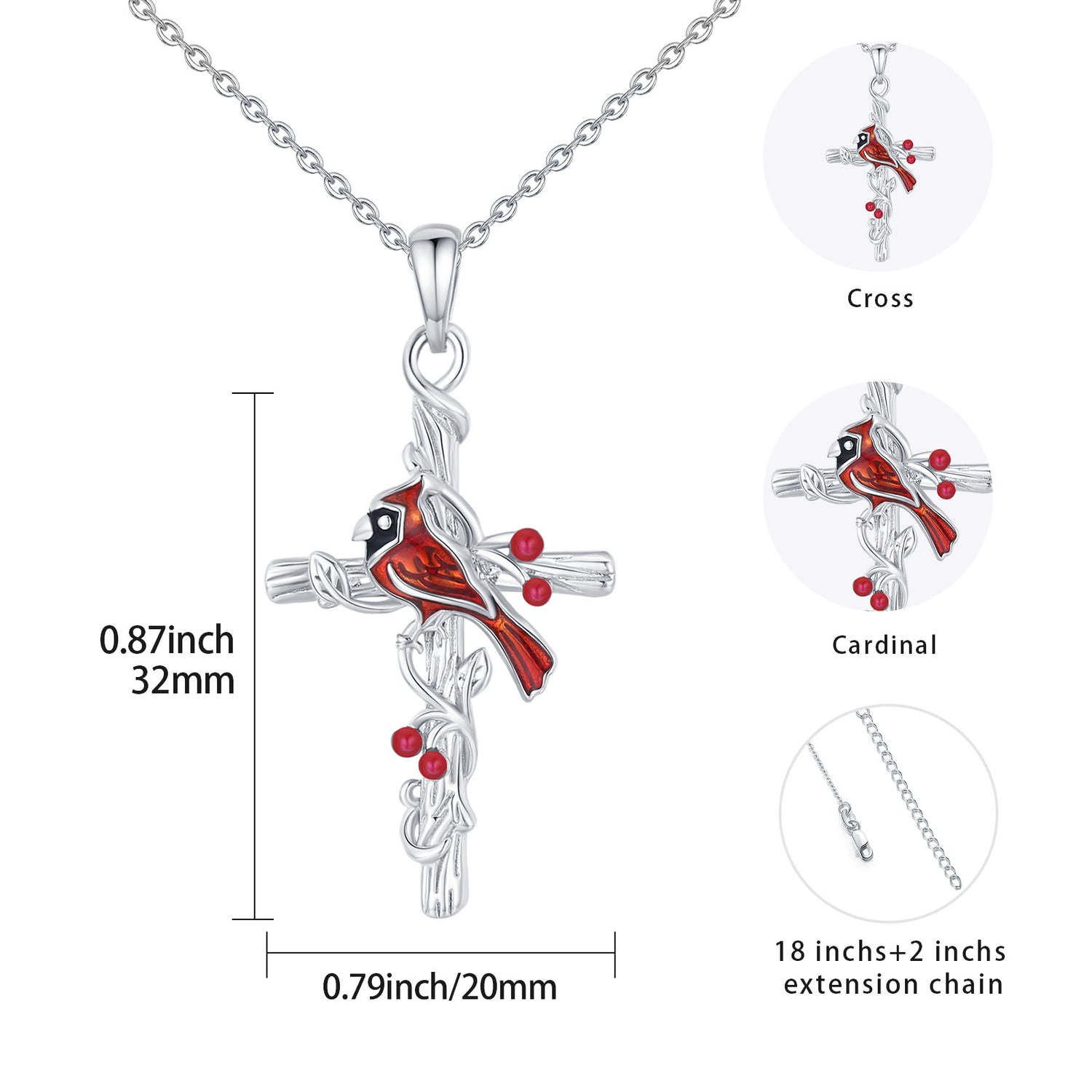 Sterling Silver Cardinal & Cross Pendant Necklace
