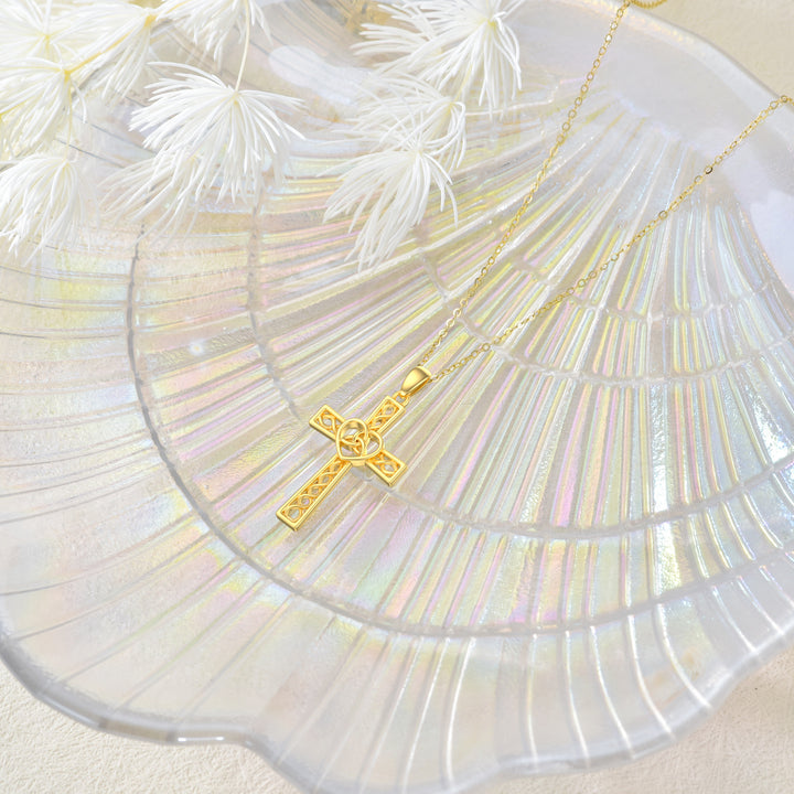 14K Gold Celtic Knot & Cross Pendant Necklace