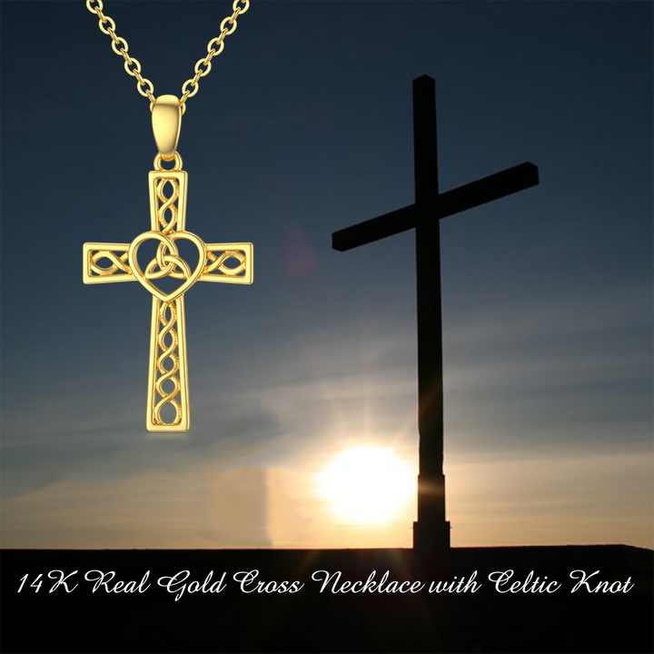 This no-stone Women's Pendant Necklace is crafted from High-Quality 14K Gold, featuring a Celtic Knot Cross Design.
