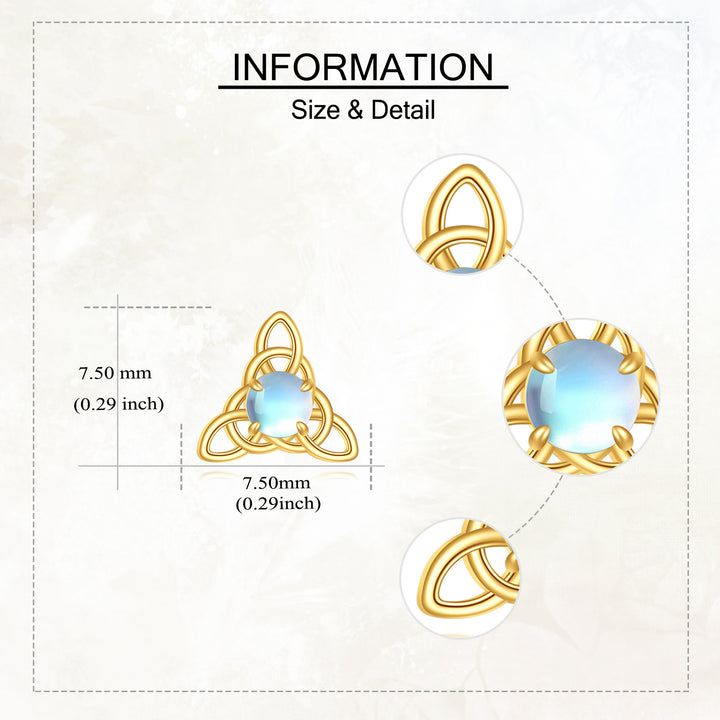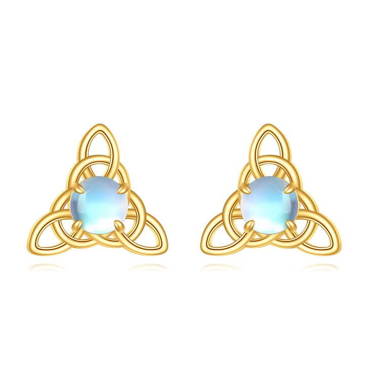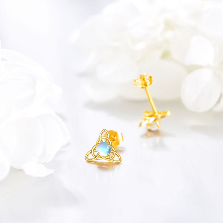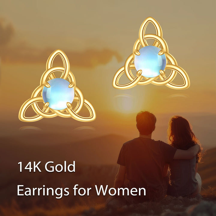14K Gold Moonstone Celtic Knot Stud Earrings