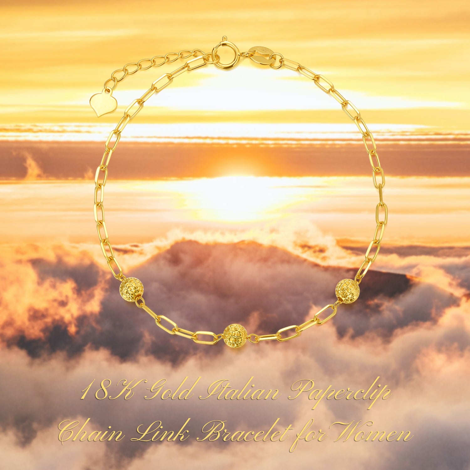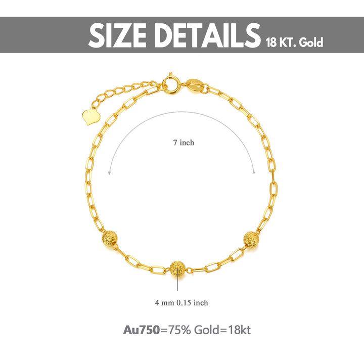 18K Gold Bead & Paper Clip Metal Beads Bracelet