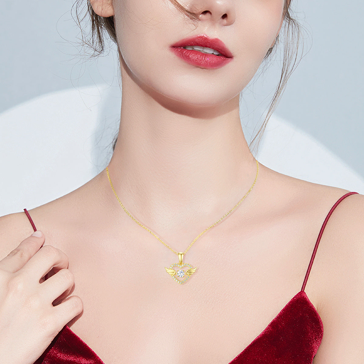 This 14K Gold Cubic Zirconia Angel Wing & Heart Pendant Necklace by YFN radiates tenderness and spiritual beauty. The angel wing motif, a symbol of guidance and protection, cradles a Cubic Zirconia heart that sparkles with emotional warmth. Crafted in gold, the pendant offers both luxury and sentiment, making it a meaningful accessory for gifting or personal reflection.